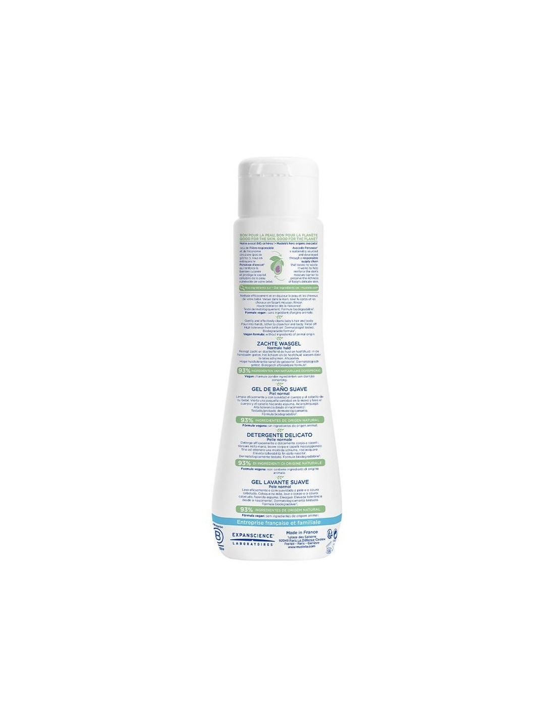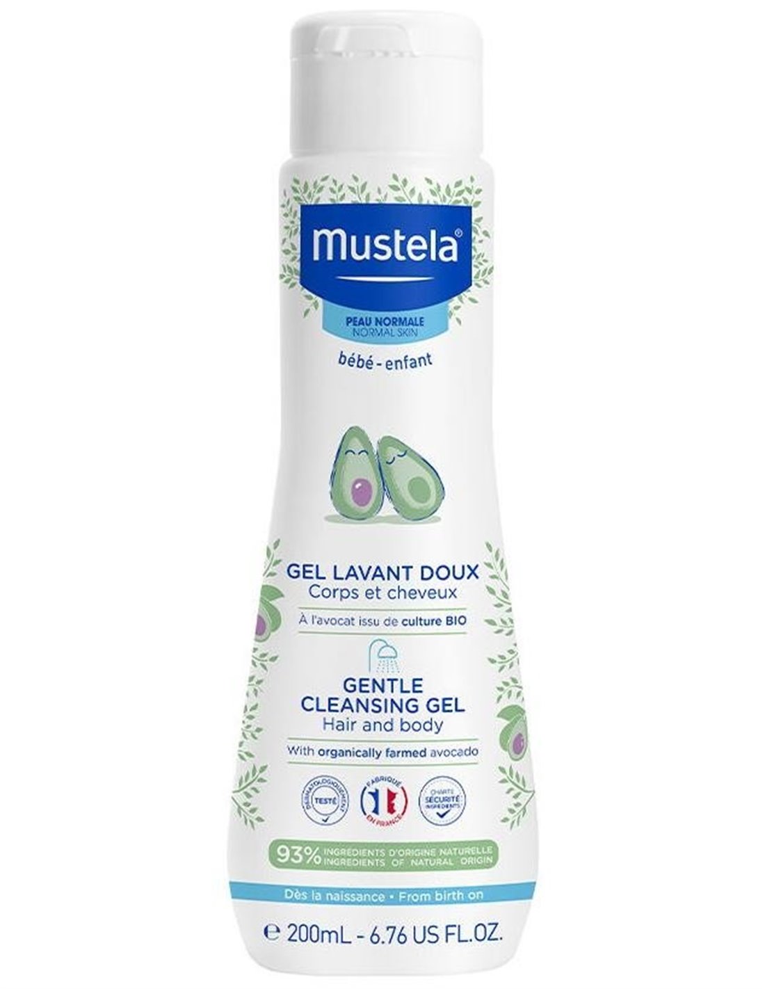 MUSTELALimpia la cara, el cuerpo y el cabello de recién nacidos, bebés y niños. La delicada fórmula con aguacate Bio protege y respeta la piel de los niños y se puede utilizar a diario desde el nacimiento. Tiene alta tolerancia testada, suaviza y compensa los efectos resecantes del agua.