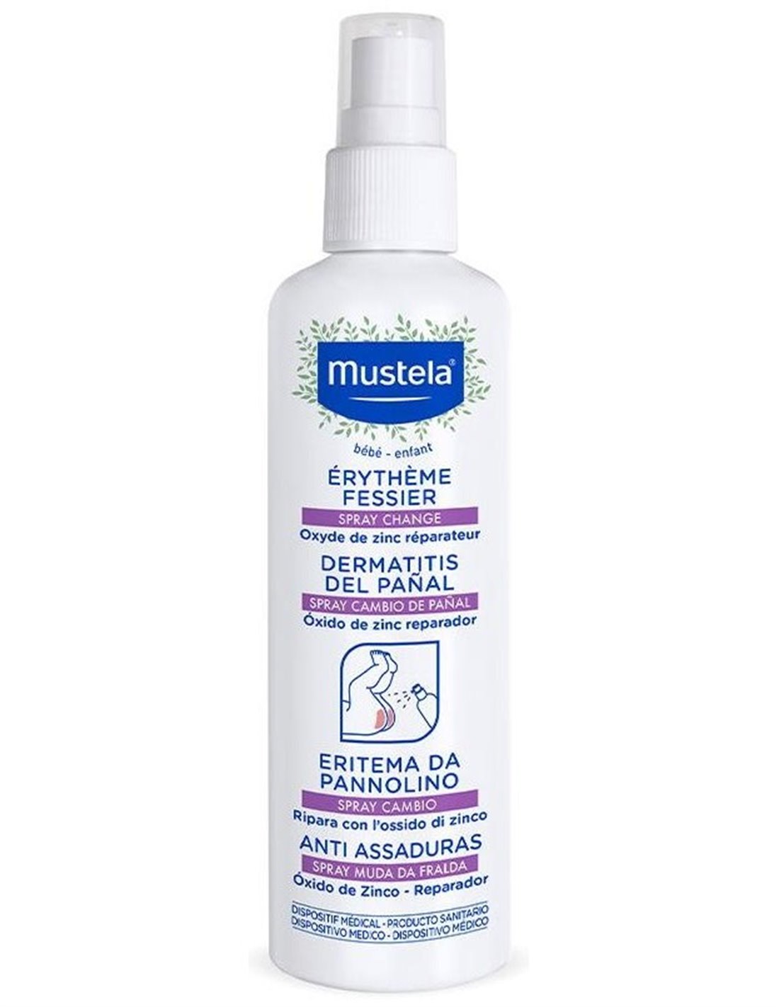 MUSTELACrema indicada en caso de dermatitis del pañal leve a moderada, desde el nacimiento. El spray higiénico, enriquecido con extractos de Caléndula y Camomila BIO, ayuda a proteger, suavizar y calmar la piel, alivia la incomodidad que producen las irritaciones en la zona del pañal y favorece la recuperación natural de la piel.