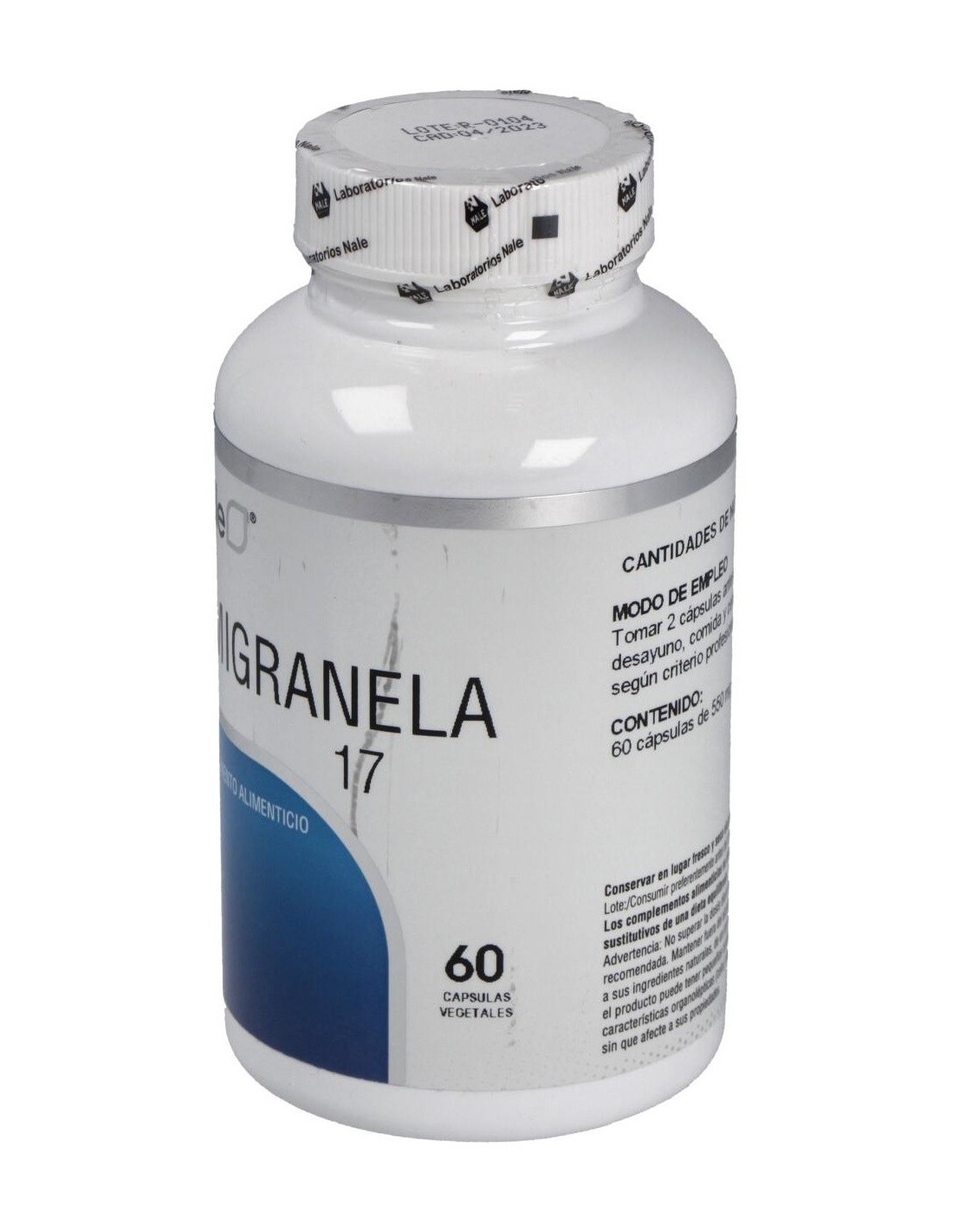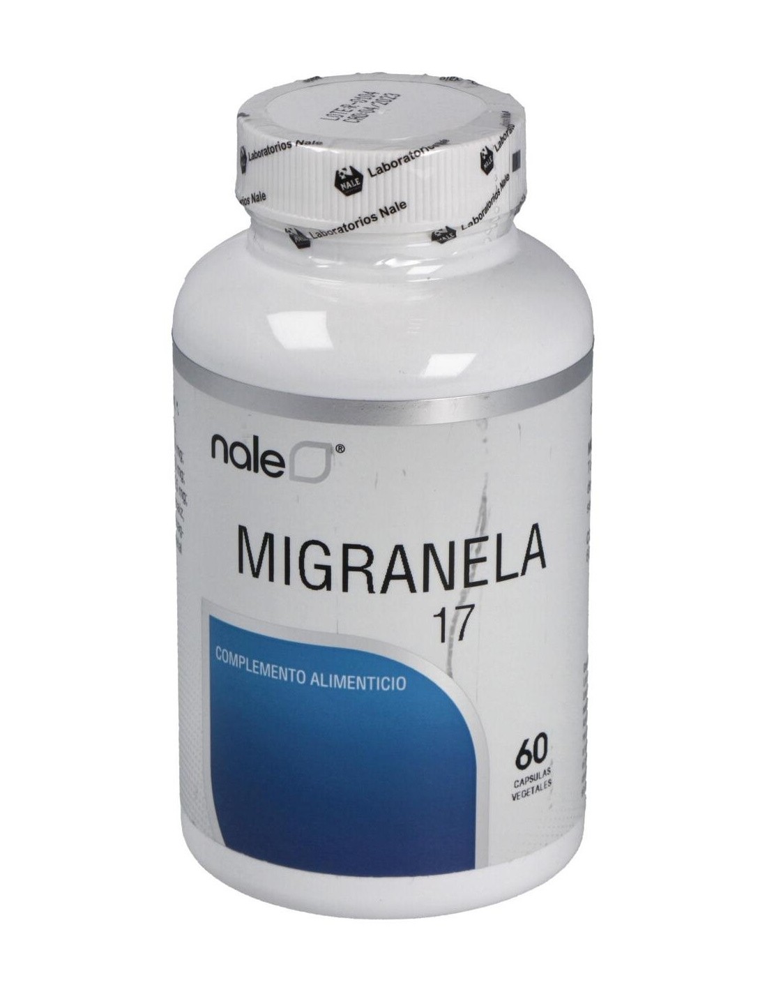 Nale Migranela 17 60caps es un complemento alimenticio en forma de cápsulas cuya función principal es la de ayudar a disminuir todo tipo de dolores de cabeza, ya sean jaquecas o migrañas, de cualquier etilogía (digestivas, circulatorias, tensionales, etc...).