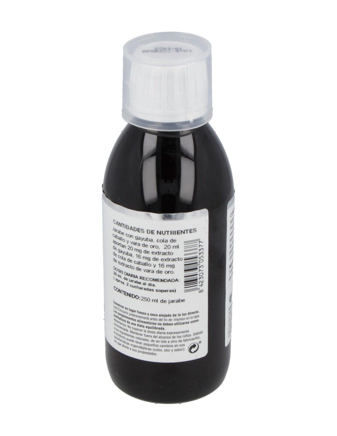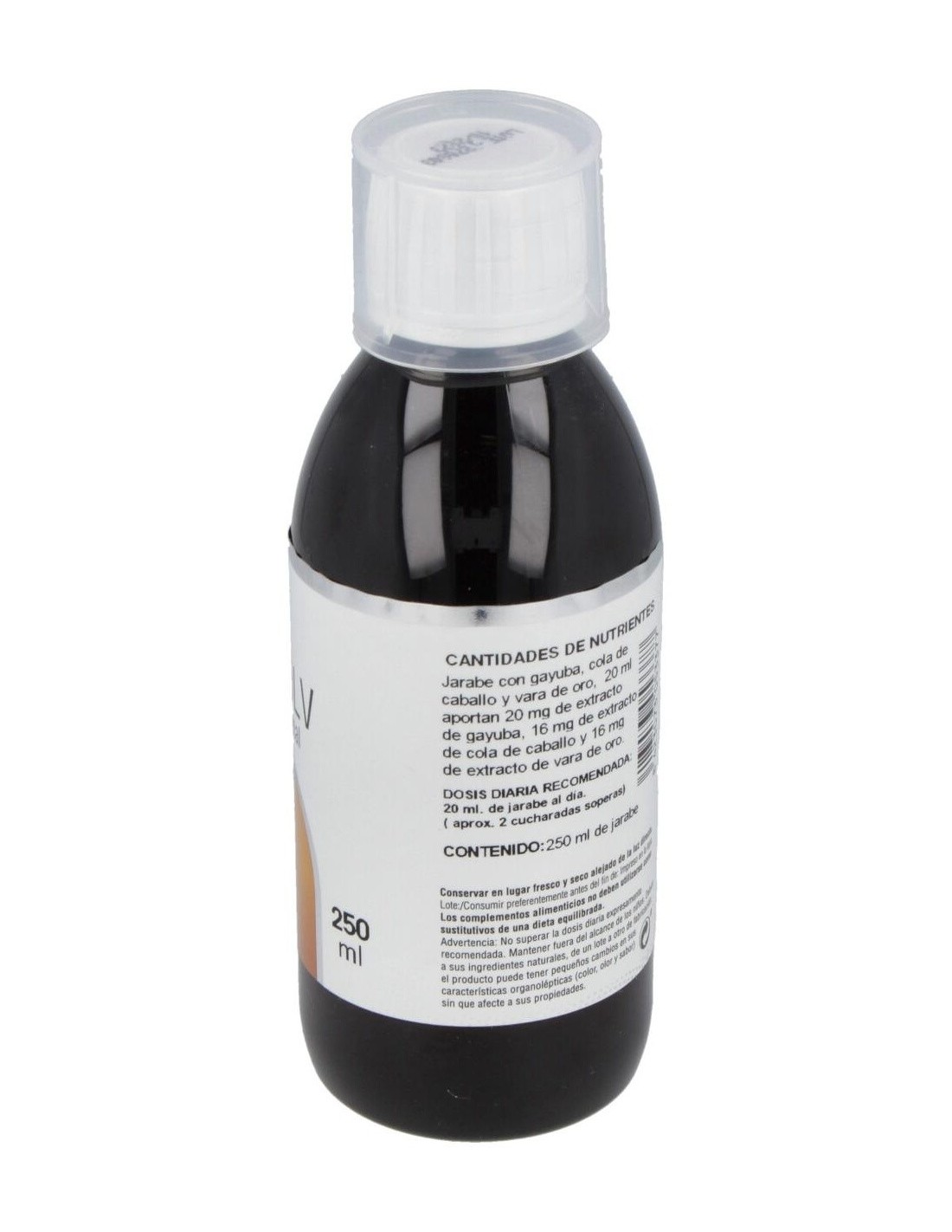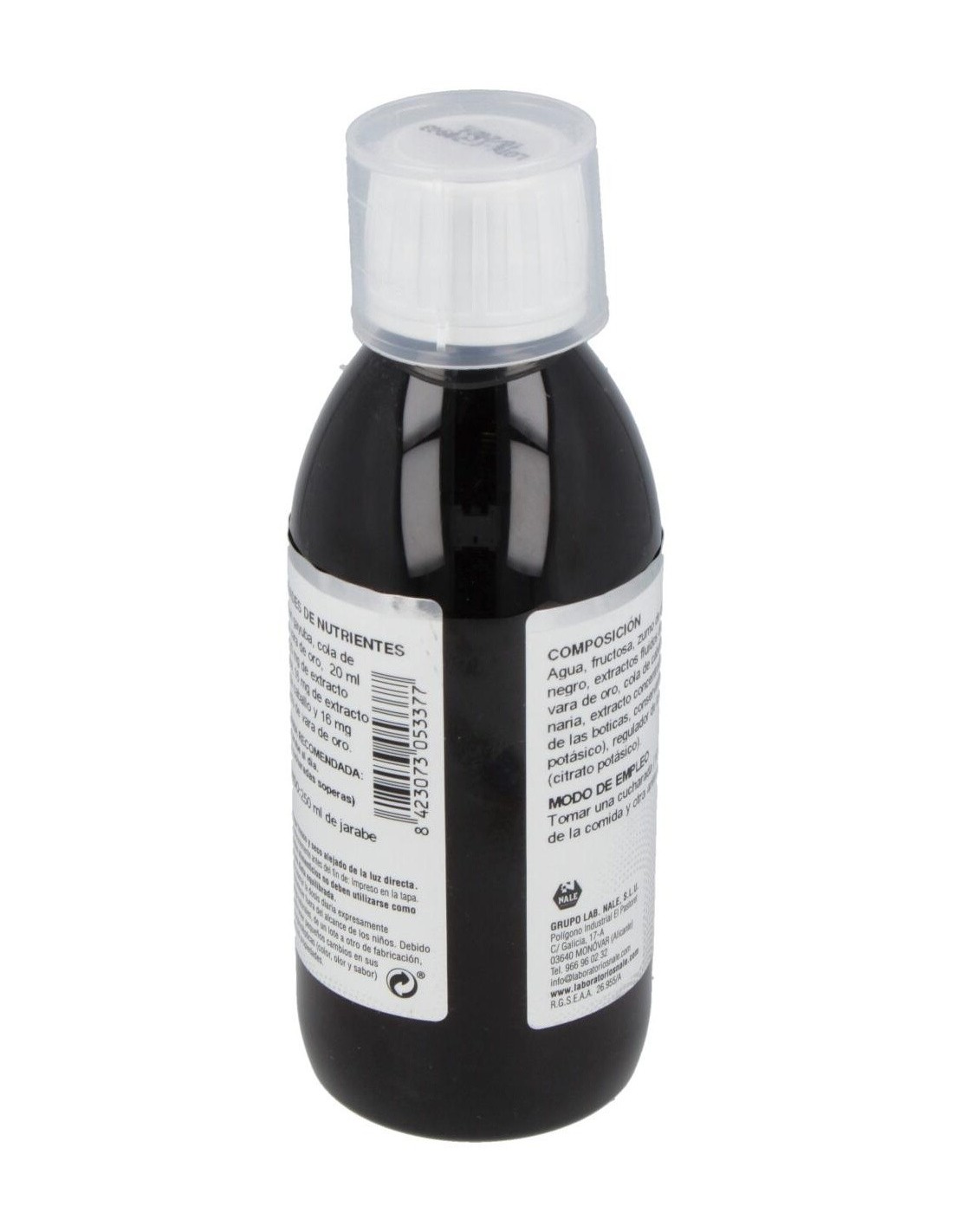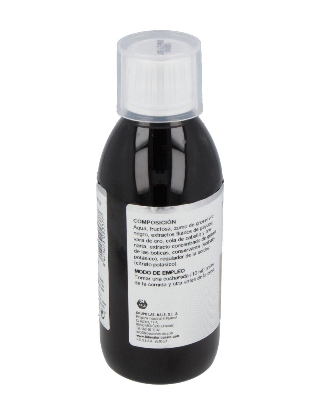 Fructosa, Agua, Grosellero Negro, Gayuba, Grama, Vara de Oro, Cola de Caballo, Arenaria, Citrato Potásico, Conservador (Sorbato potásico).