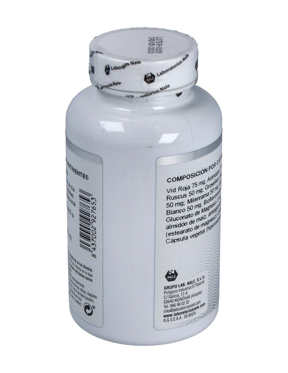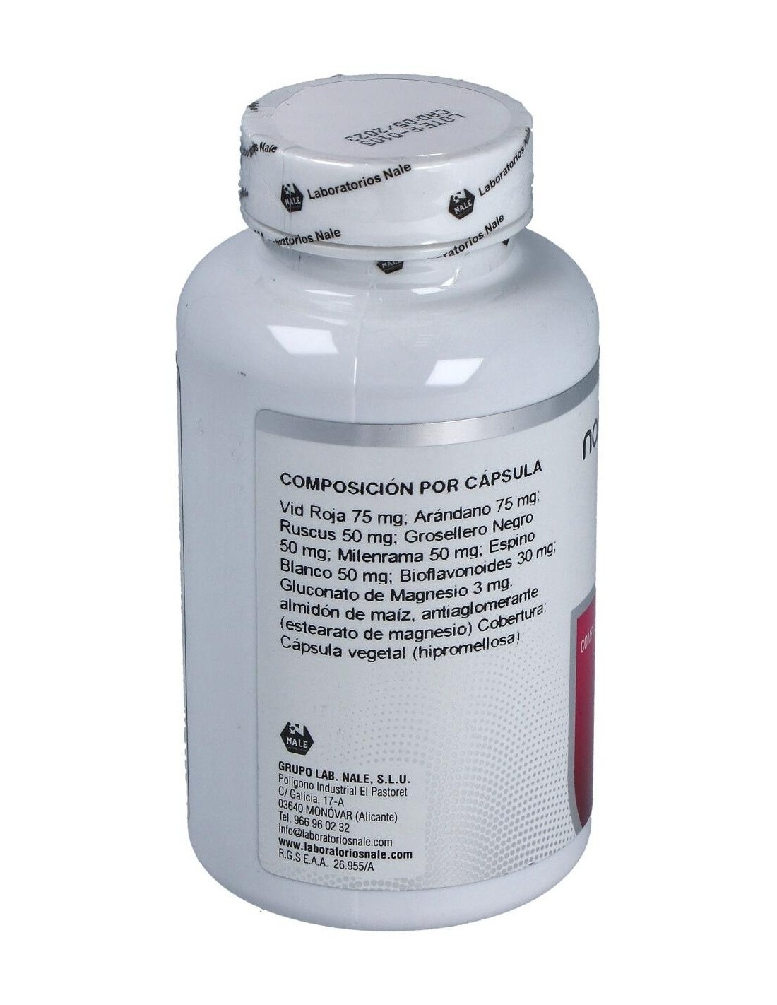 Vid roja, Arándano, Ruscus, Grosellero negro, Milenrama, Espino blanco, Bioflavonoides, Gluconato de Magnesio. Cápsula Vegetal (Hipromellosa).