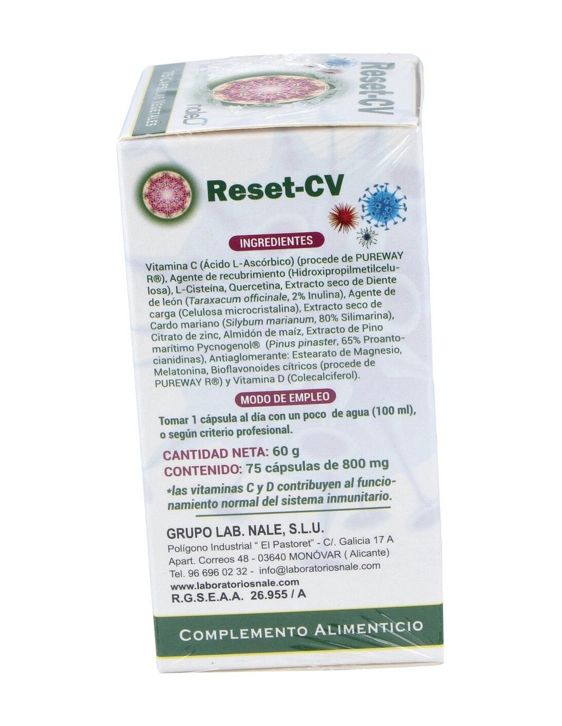 Vitamina C (Ácido L-Ascórbico) (procede de PUREWAY R®), Agente de recubrimiento (Hidroxipropilmetilcelulosa), L-Cisteína, Quercetina, Extracto seco de Diente de león (Taraxacum officinale, 2% Inulina), Agente de carga (Celulosa microcristalina), Extracto seco de Cardo mariano (Silybum marianum, 80% Silimarina), Citrato de zinc, Almidón de maíz, Extracto de Pino marítimo Pycnogenol® (Pinus pinaster, 65% Proantocianidinas), Antiaglomerante: Estearato de Magnesio, Melatonina, Bioflavonoides cítricos (procede de PUREWAY R®) y Vitamina D (Colecalciferol).