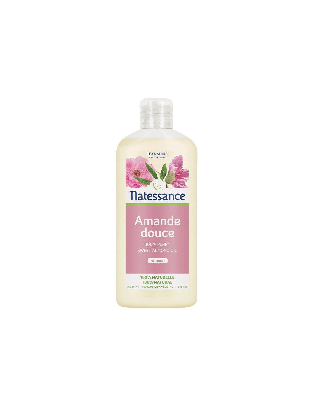 NATESSANCEAceite de Almendra dulce natural 100%, nutritivo y suavizante. El aceite de almendra dulce es muy fino y transparente Es reconocido por su alto contenido en ácidos grasos monoinsaturados, como el omega 9. Reconocido por sus propiedades suavizantes, es ideal para toda la familia. Sin conservantes de síntesis. Formulado sin: paraben, parafina, fenoxietanol, silicona, ftalato. Sin OMG. para uso externo y alimentario.