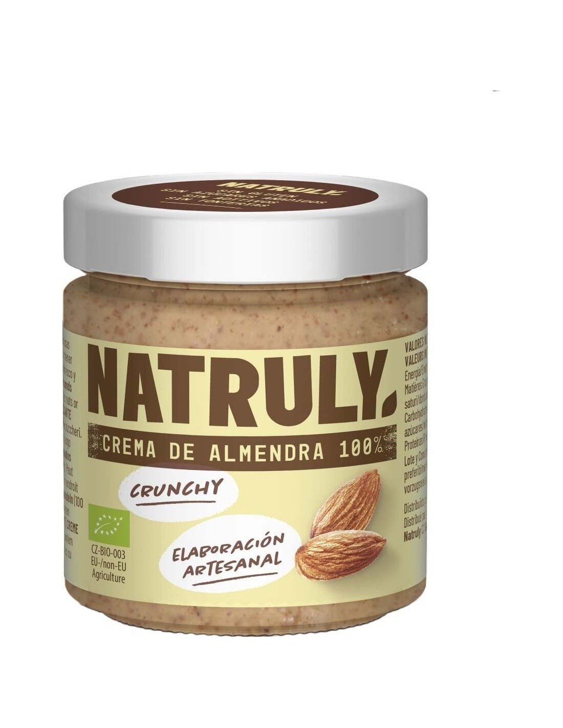 NATRULYCrema de almendras vegana y orgánica de elaboración artesanal. Sin azúcar, sin gluten, sin lactosa, sin aceite de palma ni aditivos artificiales. 100% almendras ligeramente tostadas y molidas. De textura suave y cremosa. Viene en un bote de cristal.