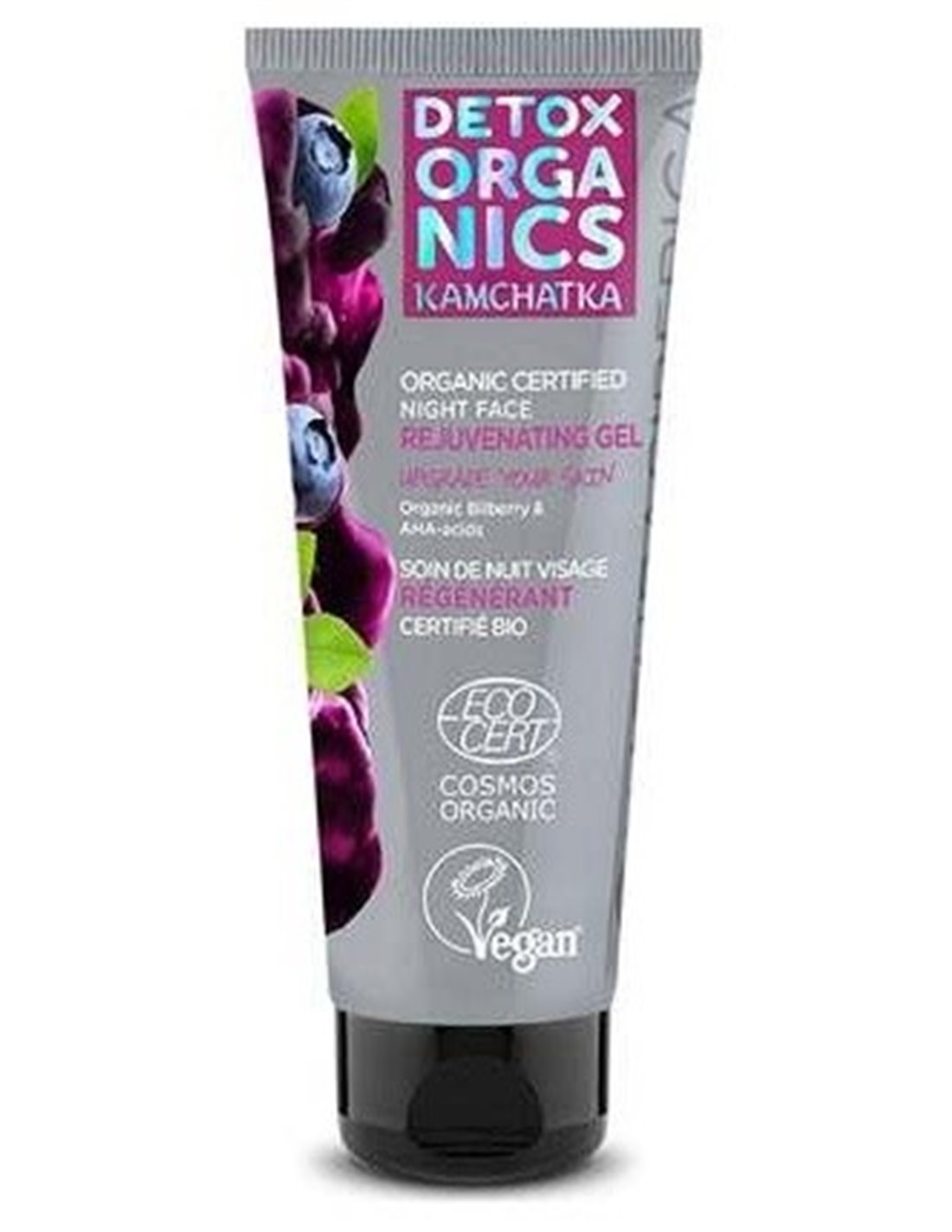 NATURA SIBERICAEste gel de noche proporciona un tratamiento semanal para renovar y purificar la piel. El extracto de arándano orgánico y los ácidos AHA nutren la piel con vitaminas y antioxidantes mientras ralentizan el proceso de envejecimiento. Producto vegano. Cosmos Organic.