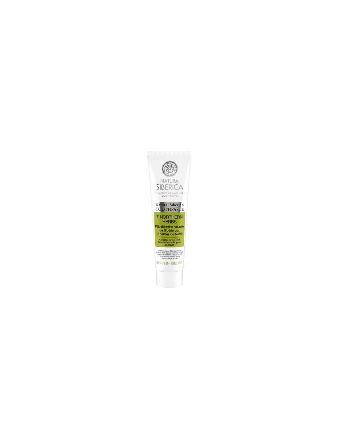 NATURA SIBERICAPasta de dientes vegetal, basada en una combinación única de 7 hierbas siberianas de recolección silvestre y plantas orgánicas, limpia los dientes con delicadeza, ayuda a eliminar la placa con un cepillado regular y mantiene los dientes y encías sanos, refrescando el aliento.