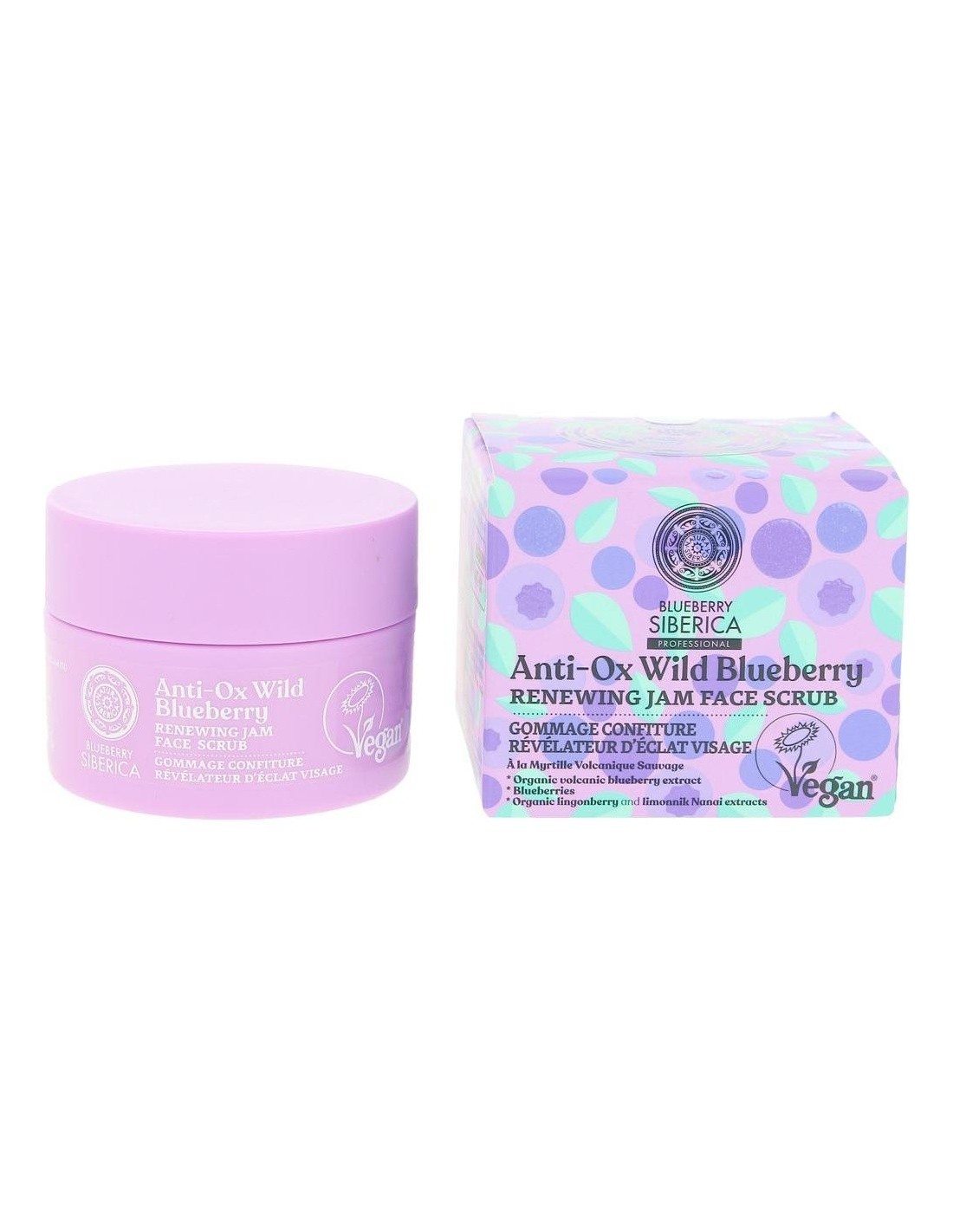 NATURA SIBERICASu doble acción exfoliante proporciona un excelente tratamiento para la piel: mientras los granos de azúcar ejercen una exfoliación mecánica, la exposición del ácido glicólico en la piel produce una exfoliación queratolítica. Consigue una limpieza eficaz de los poros, renueva la piel y unifica su tono dejando una apariencia más suave y aterciopelada. Su original textura que recuerda a una mermelada se compone de: Los arándanos volcánicos silvestres que son una fuente de valiosas vitaminas y microelementos con propiedades hidratantes y suavizantes. Los extractos de arándano rojo orgánico y de schizandra oriental que contienen ácidos AHA exfoliantes, encargados de controlar la producción de grasa y mejorar la apariencia del cutis. Cosmético vegano.