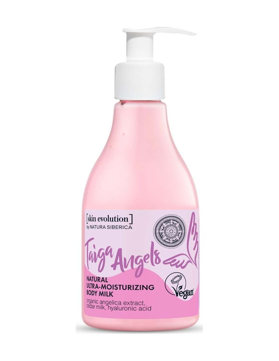 NATURA SIBERICAGracias a la mezcla de extractos y de ácido hialurónico de la leche corporal «Taiga Angels» la piel se siente increíblemente hidratada y con un tacto suave y aterciopelado. El extracto de angélica orgánica tonifica la piel y la llena la piel de energía. Cosmético vegano.