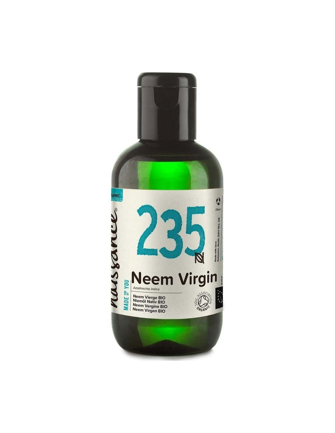 NATURAL BIOAceite de Neem 100% virgen con un proceso de elaboración de prensado en frío y certificado ecológicamente. Es fuente natural de ácidos grasos esenciales y proteínas, que ayudan a reforzar la barrera cutánea y a proteger la piel de la sequedad.