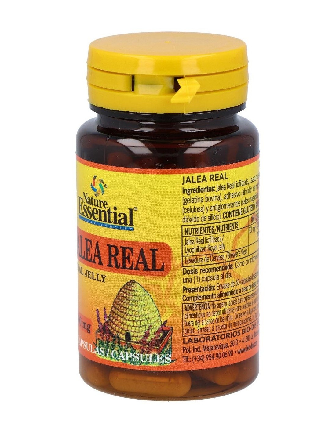 Nature Essential jalea real es un complemento alimenticio con base de jalea real que aporta energía extra al organismo, ayuda a prevenir las anemias y contribuye a estimular, tonificar y equilibrar el sistema nervioso.