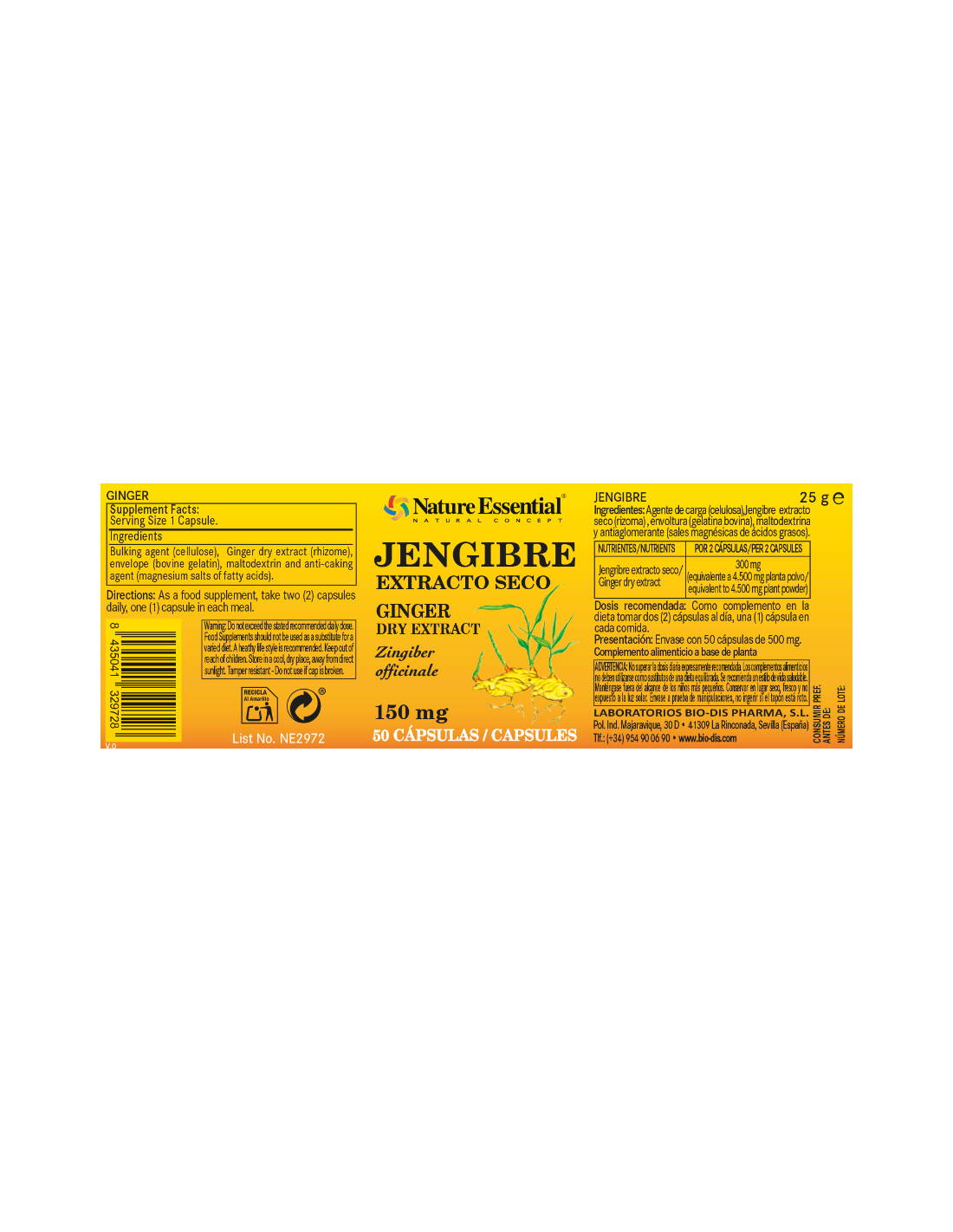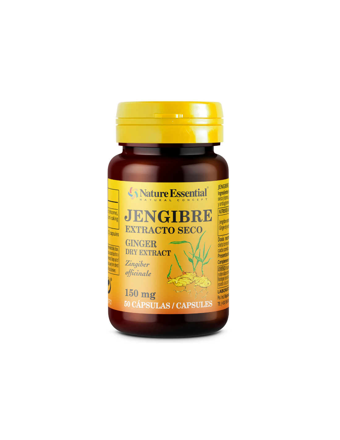 NATURE ESSENTIALComplemento alimenticio a base de extracto seco de jengibre. No contiene gluten, ni lactosa.