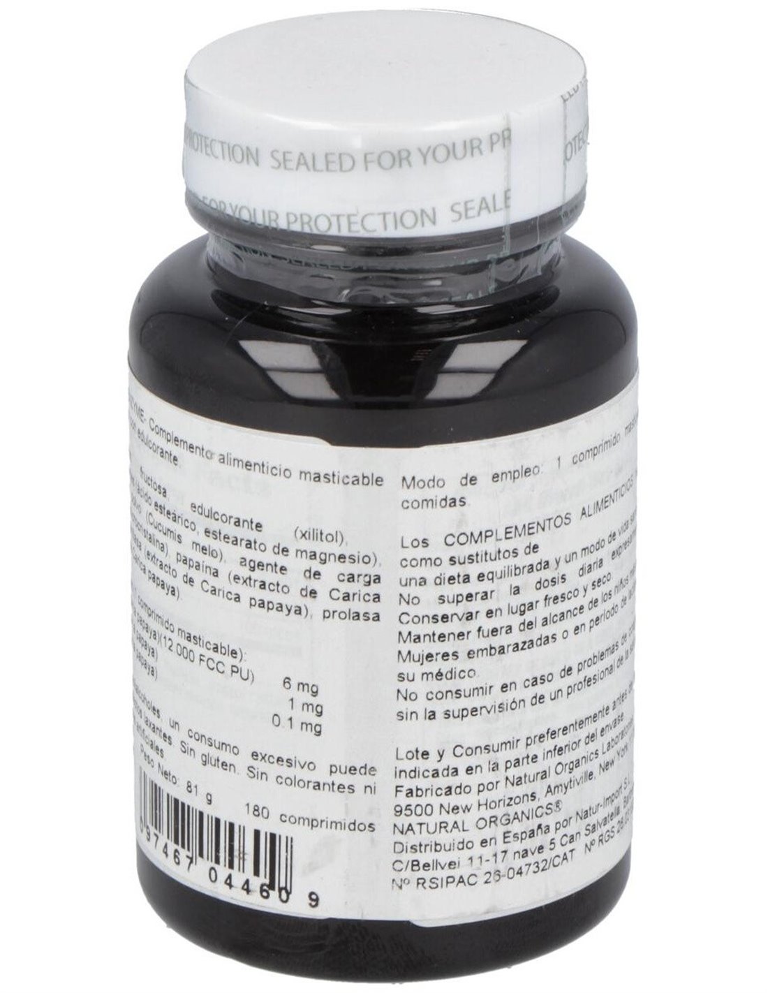 NATURES PLUSComprimidos masticables formulados con el fruto maduro y las hojas de la papaya. La Papaína es una enzima similar a la pepsina humana que descompone las proteínas y favorece el proceso digestivo.
