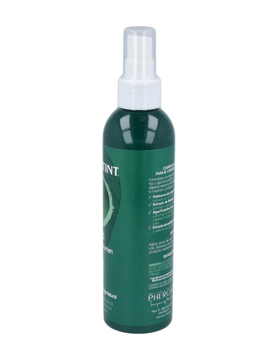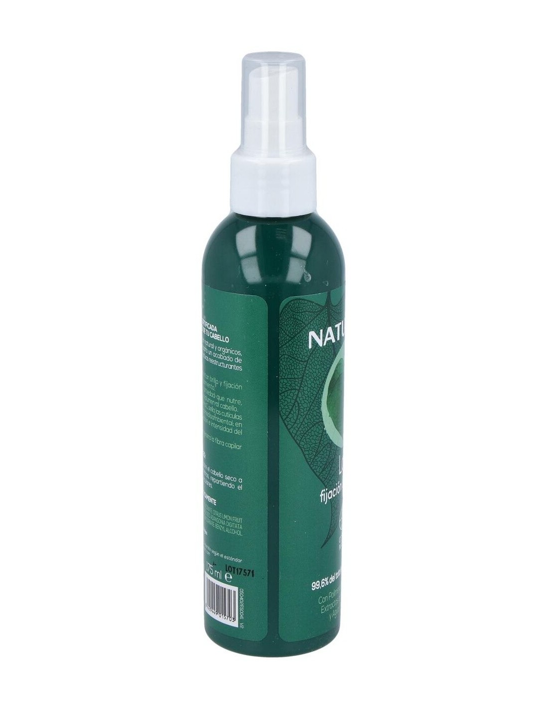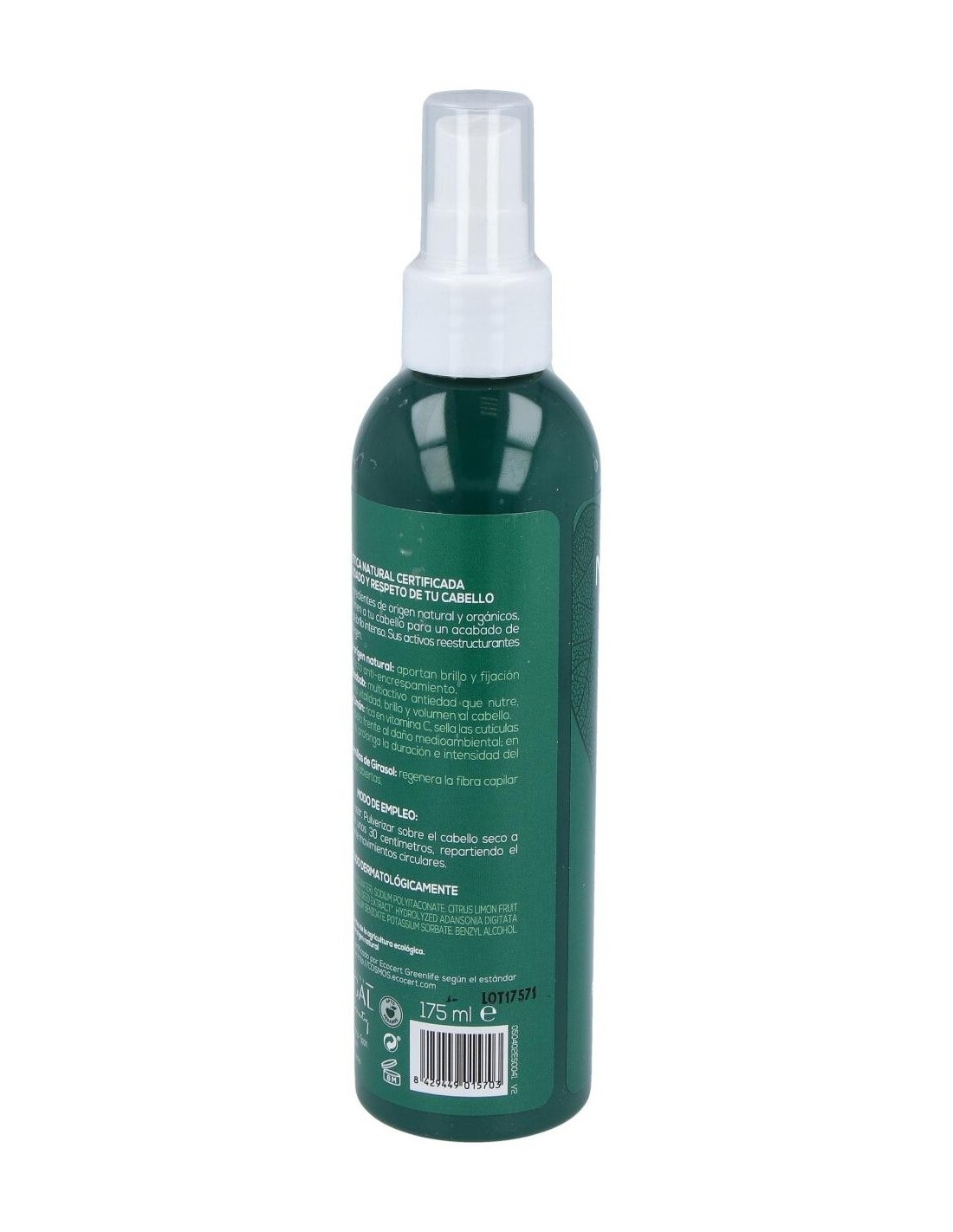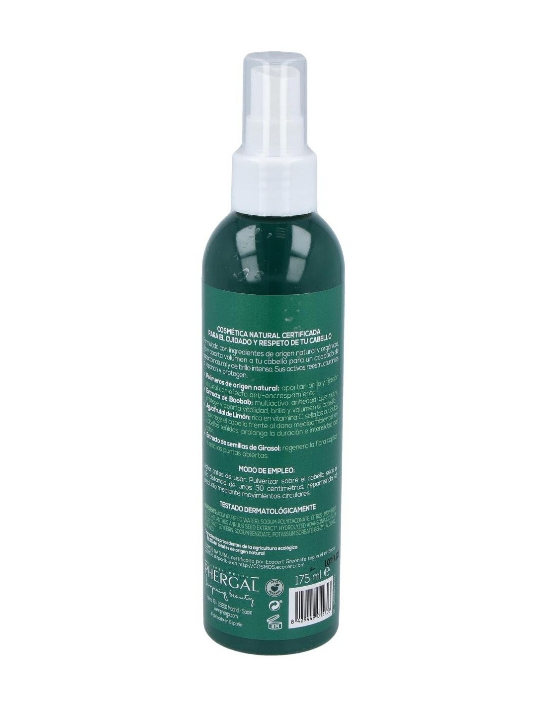 Laca para el cabello de ingredientes de origen natural. Esta laca es adecuada para todo tipo de cabellos ayudando a proteger y fijar de forma natural el cabello o cualquier peinado. Sin dejar un efecto pegajoso ni acumulación, aportando un estilo flexible y vibrante. También ayuda a reducir el encrespamiento y ayuda a protegerlo contra la decoloración. Su fórmula con extracto de baobab, agua de fruta de limón, extracto de semilla de girasol y polímeros de origen natural, ayudan a conseguir volumen además de protección, consiguiendo a la vez un beneficio anti-frizz sin apelmazar, cuidando y reparando el cabello de forma suave y natural.