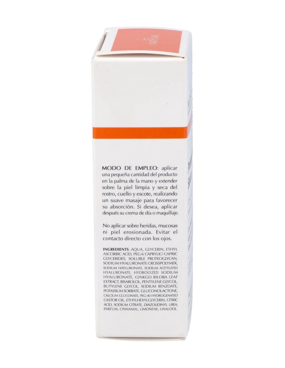 AQUA, GLYCERIN, ETHYL, ASCORBIC ACID, PEG-6 CAPRYLIC/CAPRIC GLYCERIDES, HIALURONIC ACID, SOLUBLE PROTEOGLYCAN, GINKGO BILOBA LEAF EXTRACT, BISABOLOL, BUTYLENE GLYCOL, PEG,40, HYDROGENATED CASTOR OIL, SODIUM BENZOATE, POTASSIUM SORBATE, DIAZOLIDINYL UREA, PHENOXYETHANOL, HETYLHEXYLGLYCERIN, GLUCONOLACTONE, CALCIUM GLUCONATE, PARFUM, LINALOOL.