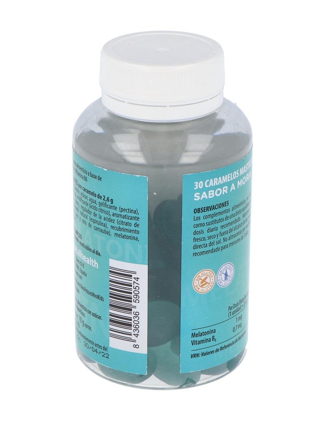 Suplemento alimenticio para niños. Ayuda naturalmente a descansar de manera continuada y tranquila. Este producto de Neo Peques se presenta en comprimidos masticables de formato ovalado y con un atractivo sabor a mora: ¡a los peques les encanta tomarlos! Estas gominolas carecen de derivados lácteos y de gluten. Cuentan, eso sí, con azúcar, por lo que no son aptos para los diabéticos. Al estar elaboradas con melatonina y vitamina B6, su efecto resulta relajante y favorece un descanso reparador. Contribuyen a hacer el momento del descanso más agradable y divertido. Tomar la dosis apropiada se convierte en una rutina que invita al descanso. Además, favorece la conciliación del sueño diario y, gracias a ello, los niños despiertan más activos, serenos y relajados. Al descansar mejor, las defensas orgánicas también pueden salir reforzadas.
