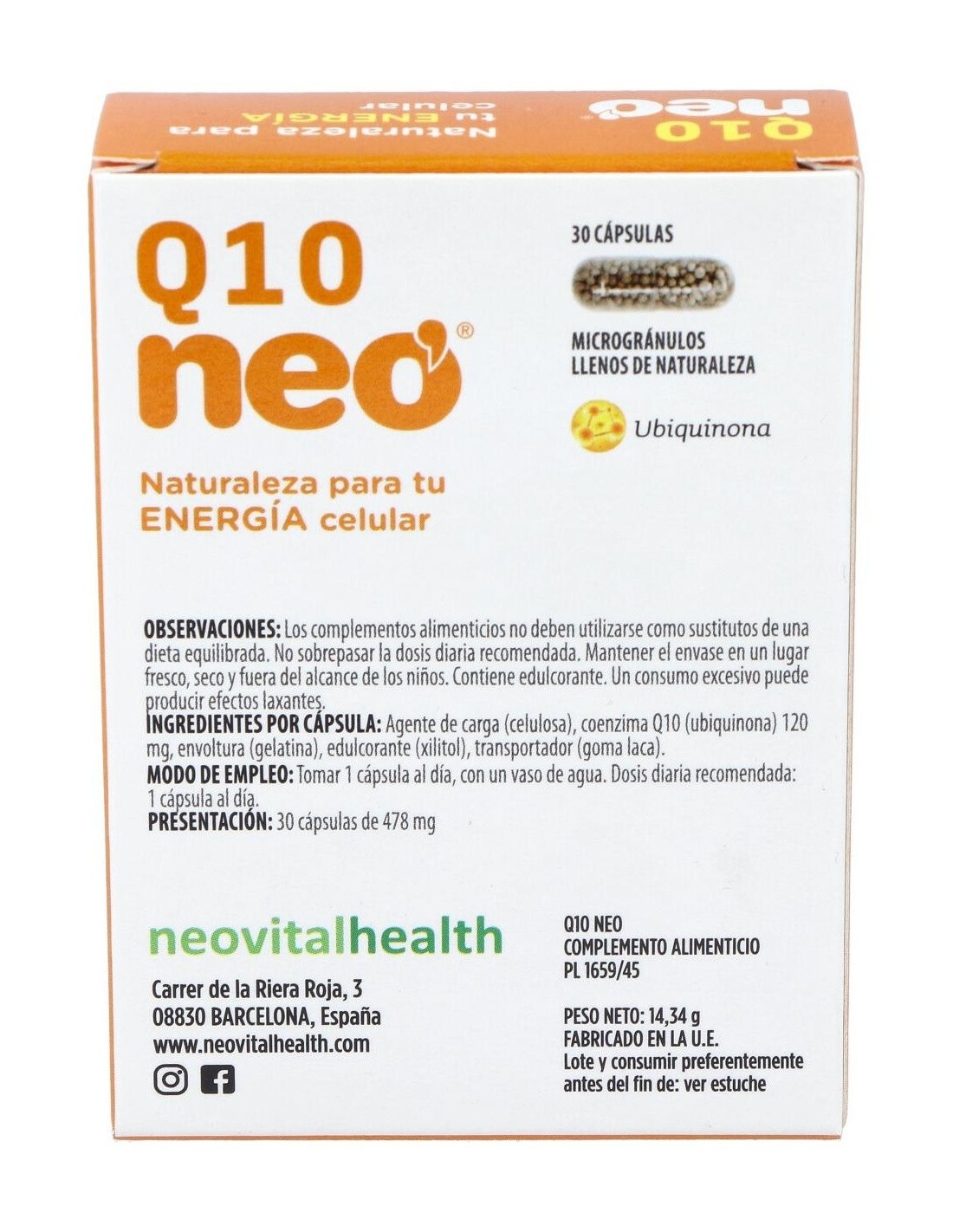 NEOSuplemento con aporte de ubiquinona, coenzima que contribuye en la producción de energía celular, necesaria para mantener la actividad diaria o la práctica de deporte. Suplemento con aporte de ubiquinona, coenzima que contribuye en la producción de energía celular, necesaria para mantener la actividad diaria o la práctica de deporte.