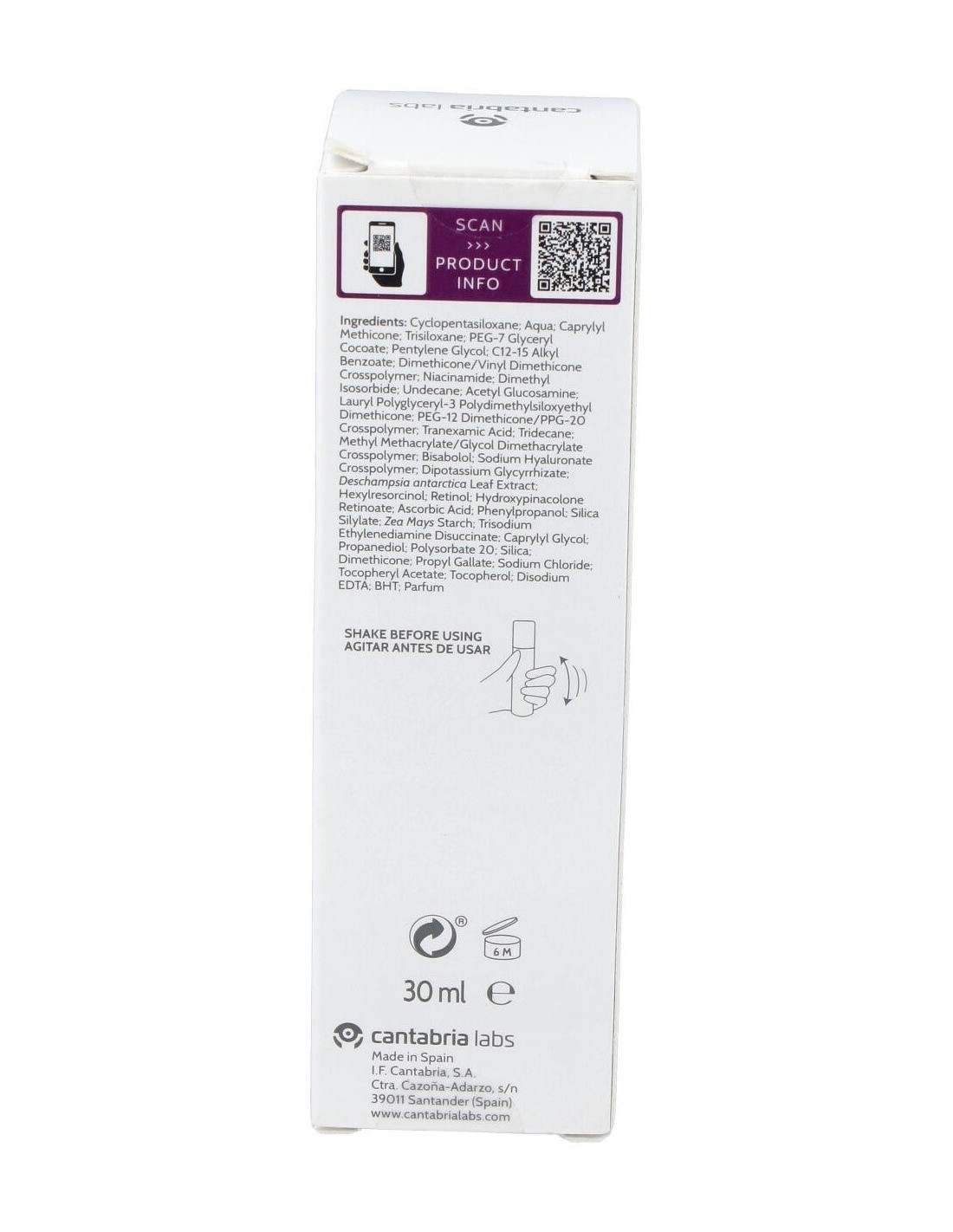 Combina tecnologías despigmentantes y retexturizantes para proporcionar resultados rápidamente visibles. Formulado con RetinSphere® Technology, con alta concentración de retinoides, proporciona una intensa renovación epidérmica y una piel más lisa. La niacinamida y ácido tranexámico contribuyen a bloquear la formación de las manchas actuando en los diferentes mecanismos de la síntesis de melanina.