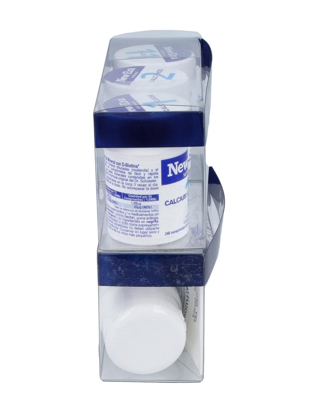 Sales: Lactosa (leche), goma arábiga, biotina, fluoruro de calcio, fosfato de calcio, dióxido de silicio.