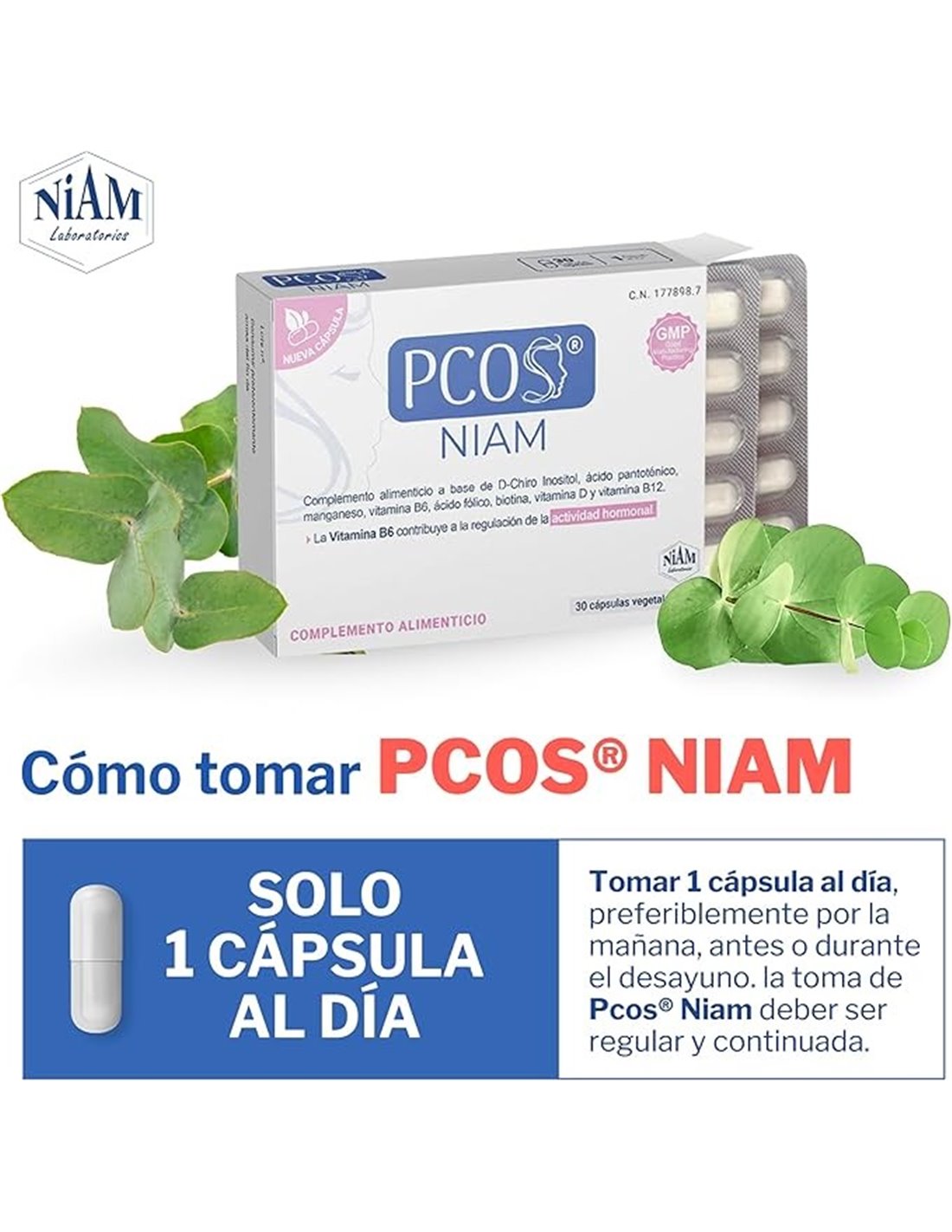 En la composición de esta fórmula destaca la vitamina B6 que contribuye a la normal función hormonal, que actúa en sinergia con otros ingredientes naturales. Puede ser útil como apoyo nutricional en mujeres con SOP (Síndrome de Ovarios Poliquísticos)
