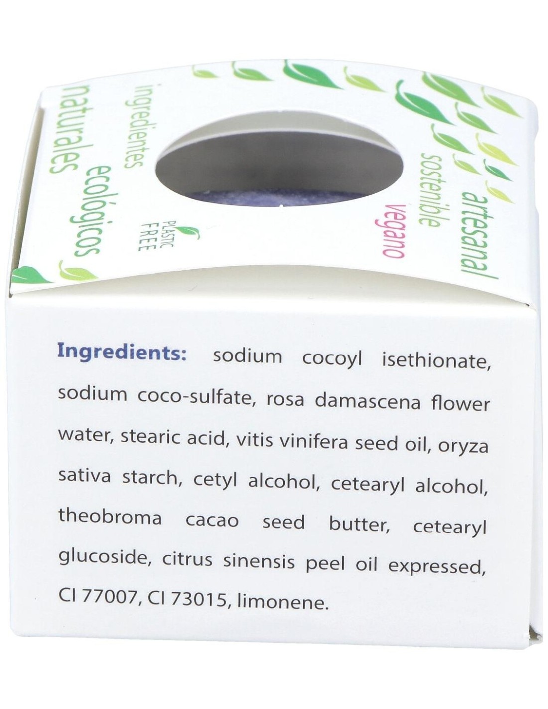 Champú en formato sólido, 100% sostenible y de origen natural procedente de la agricultura ecológica. Este champú está especialmente diseñado para cabellos blancos, con el fin de aportarles brillo, color y luminosidad, que se pierde a causa de agresiones externas como la polución, sustancias químicas o radiación solar.