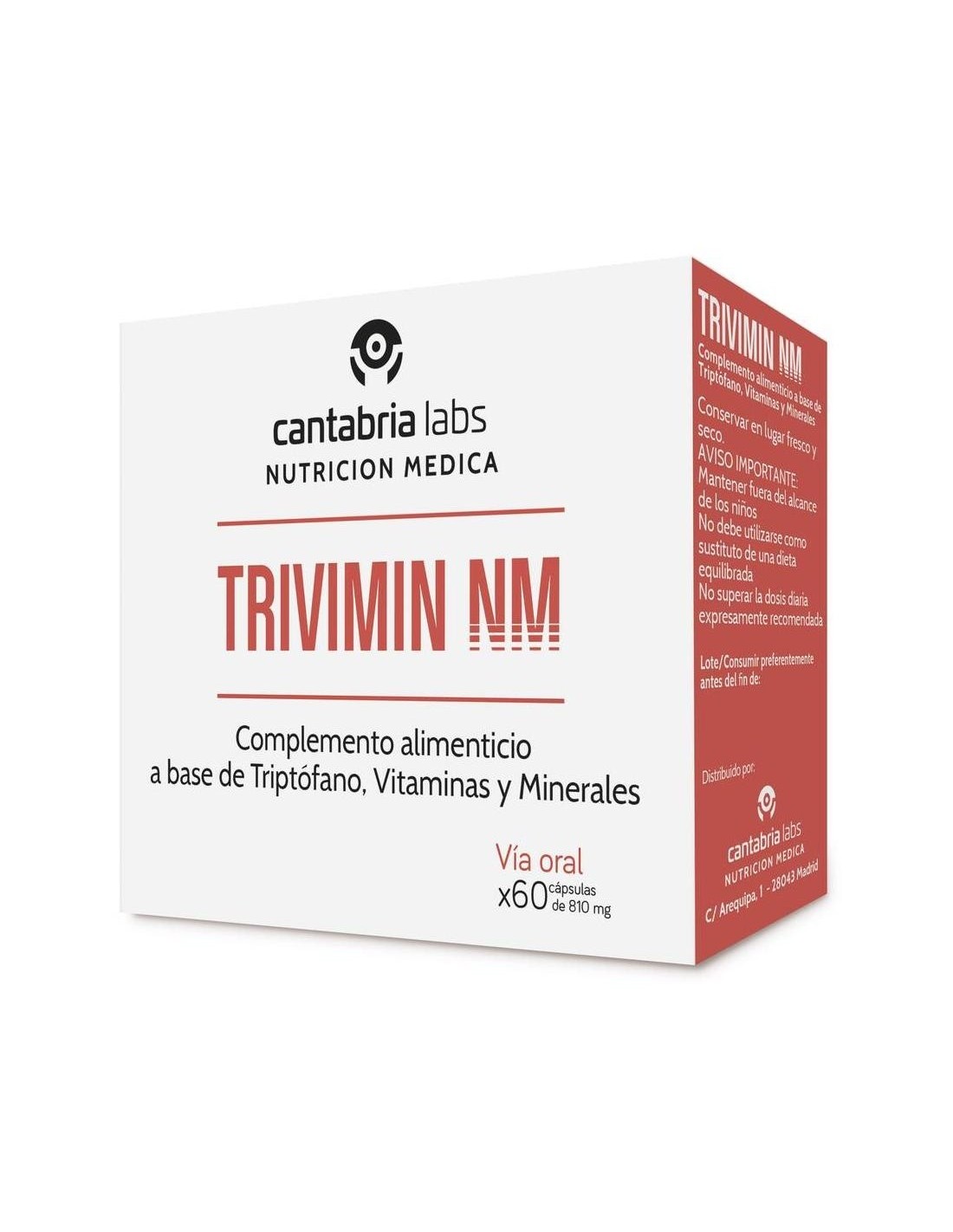 NMFórmula nutricional de L-Triptófano, magnesio, hierro, selenio y vitaminas del grupo B. El Magnesio, Vit. B3, Vit. B6 y Vit. B9 contribuyen al mantenimiento de una función psicológica normal. El Magnesio, Vit. B3, Vit. B6 y Selenio ayudan al funcionamiento normal del Sistema Nervioso. El Magnesio, Hierro, Vit. B5, Vit. B6, Vit. B9 ayudan a disminuir el cansancio y la fatiga. Producto indicado a partir de 12 años.