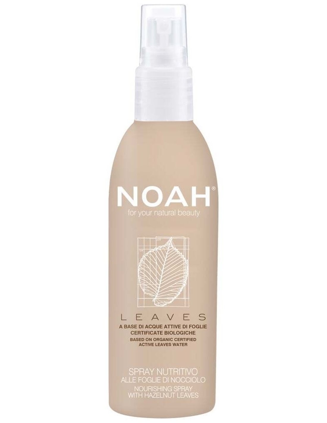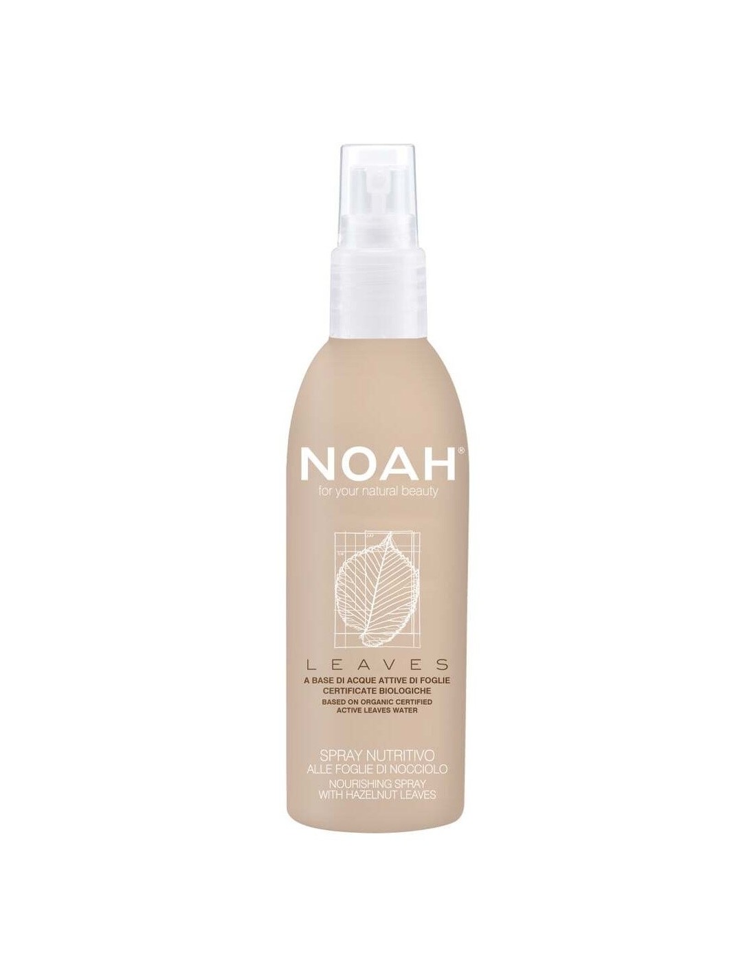 NOAHSpray a base de agua activa de hoja de avellana ecológica certificada para nutrir el cabello. Gracias a su formulación deja el cabello más hidratado y suave hasta las puntas. El producto NO contiene Siliconas, Parabenos, Parafina, Aceites Minerales, DEA y SLS.