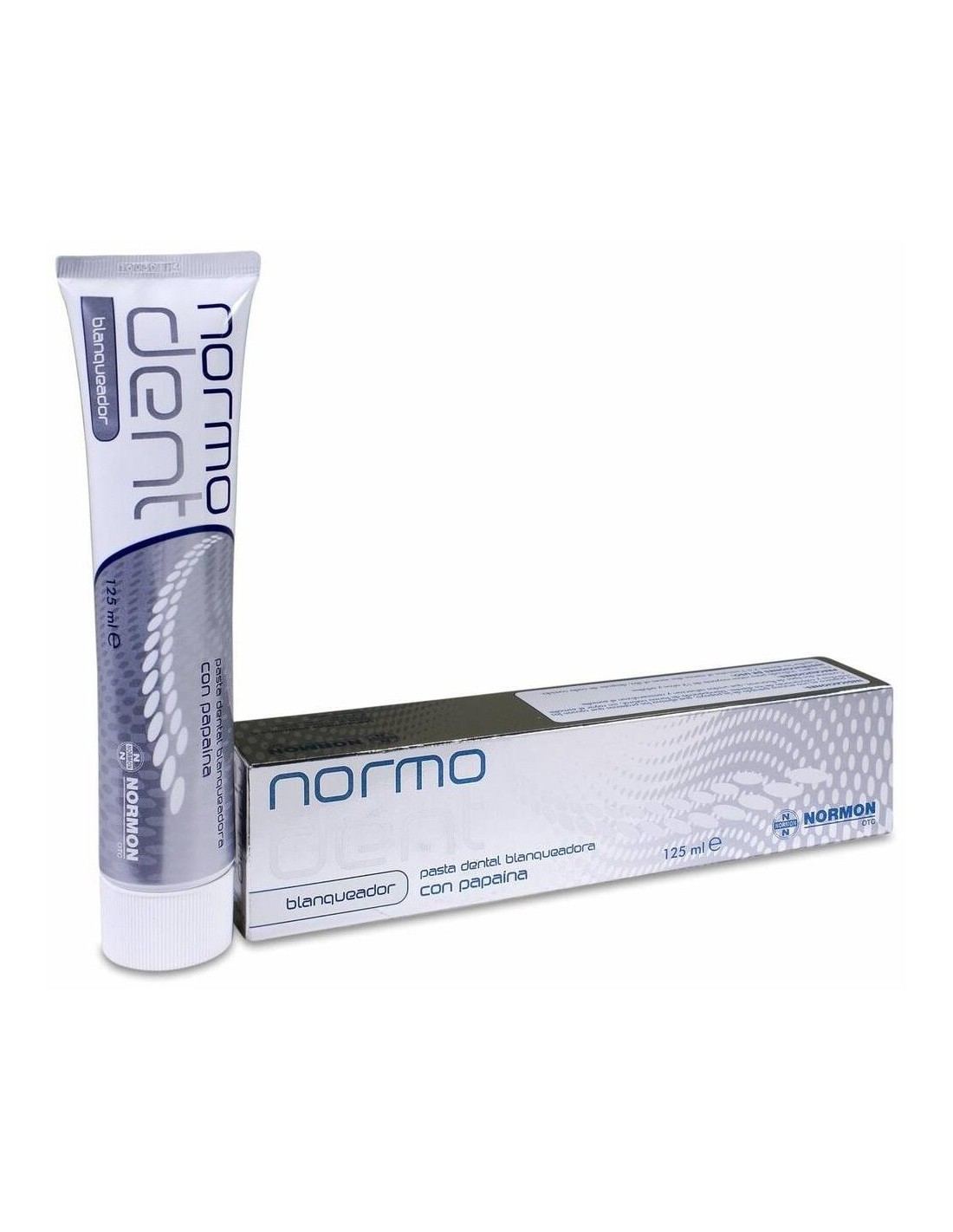 NORMODENTCon papaína que elimina las proteínas que causan las manchas y las coloraciones de los dientes, blanqueando de forma natural y sin rayar el esmalte. Además contiene dos tipos de fluoruros, hidróxido de aluminio y pirofosfato de tetrapotasio, que unidos refuerzan y remineralizan el esmalte.