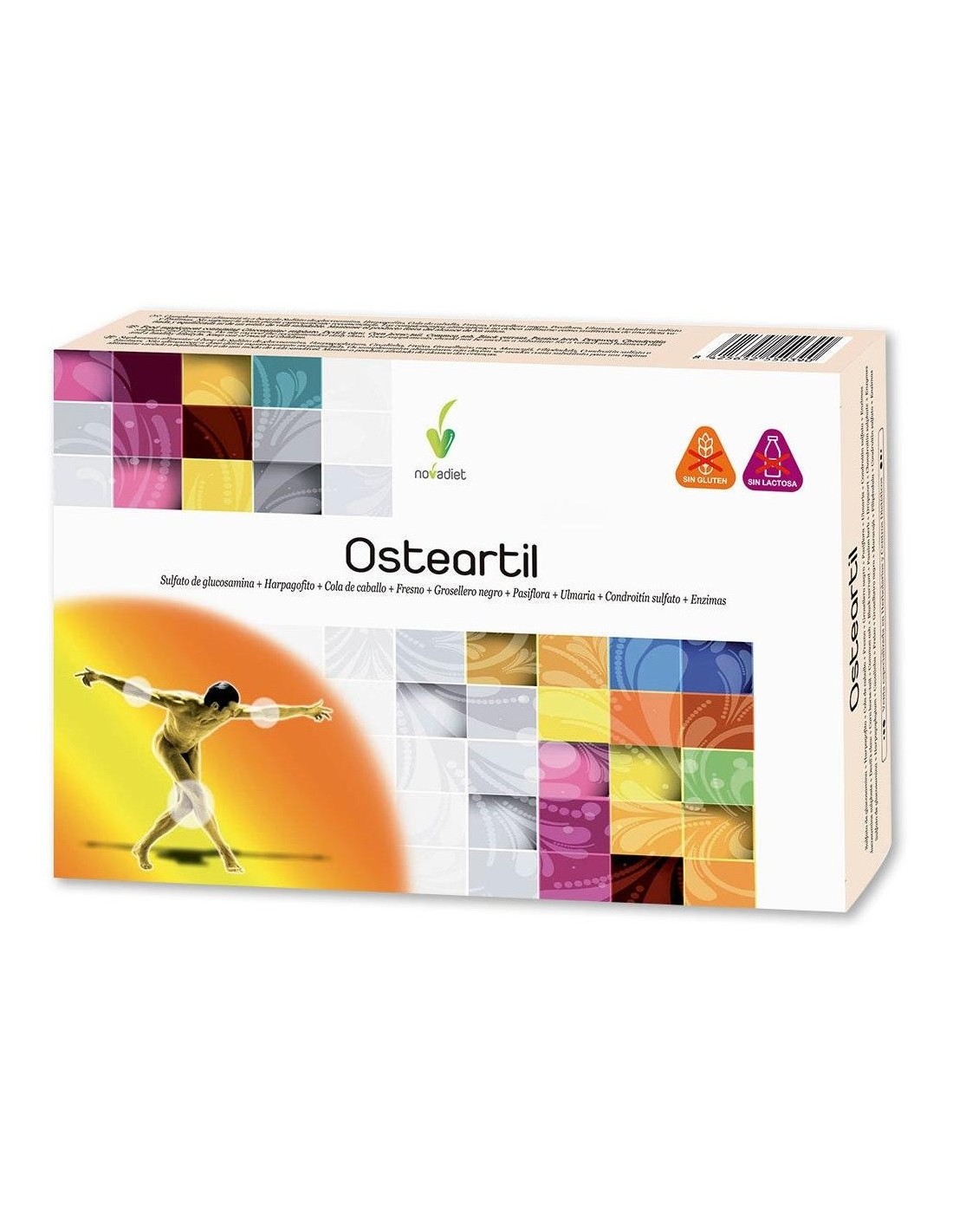 NOVADIETComplemento alimenticio a base de nutrientes de apoyo osteo-articular: la vitamina C contribuye a la formación de colágeno para el mantenimiento de huesos y articulaciones en condiciones normales y a proteger las células del daño oxidativo.