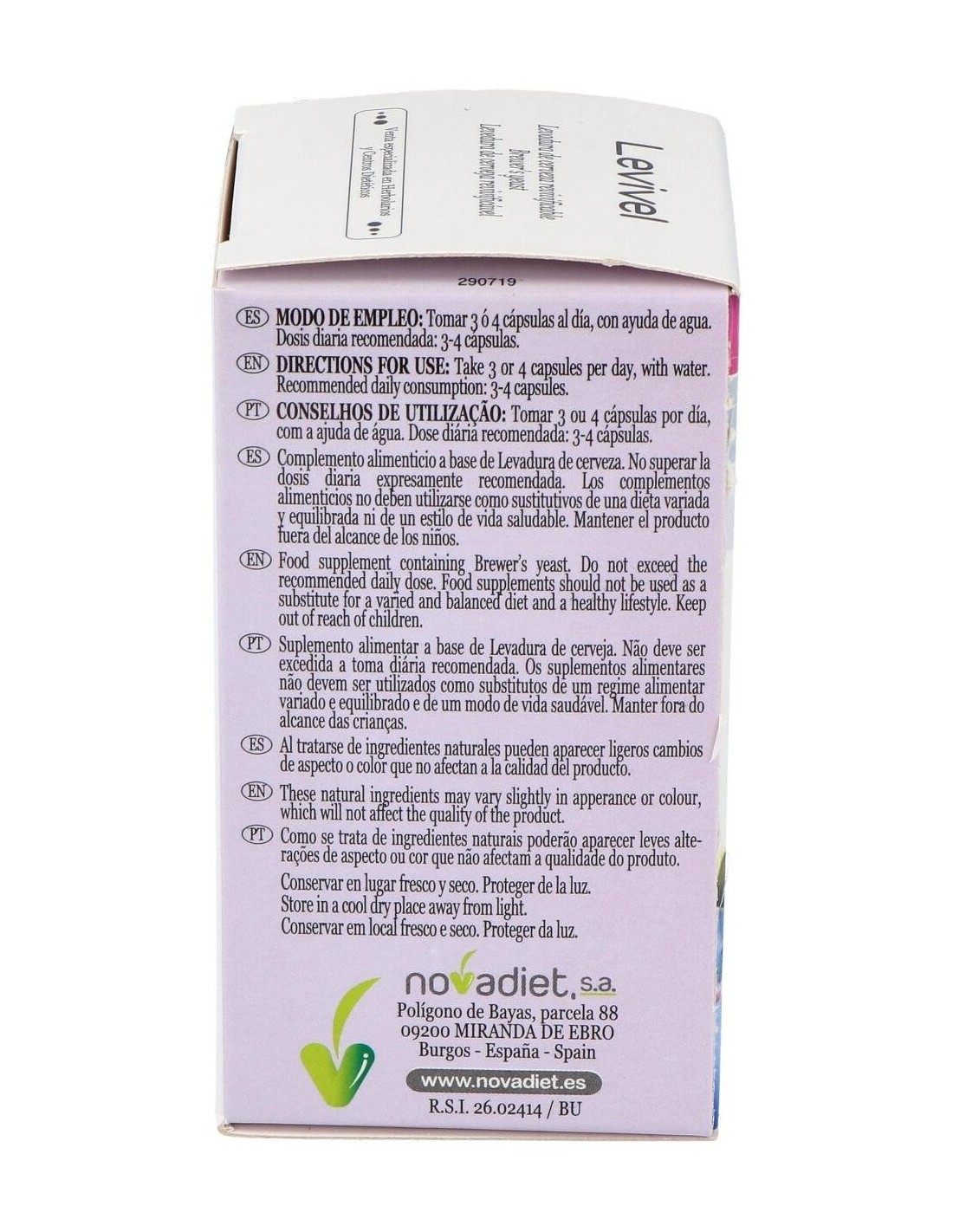 NOVADIETLas cápsulas Novadiet Levivel ayudan a mantener un correcto funcionamiento del intestino, ayudándonos a mantener la flora intestinal y, gracias a ello, ayudando a que nuestro cuerpo funcione de forma correcta. La levadura de cerveza también nos ayudará a tener un cabello abundante y suave y a que nuestras uñas sea mantengan fuertes y no se rompan con facilidad.