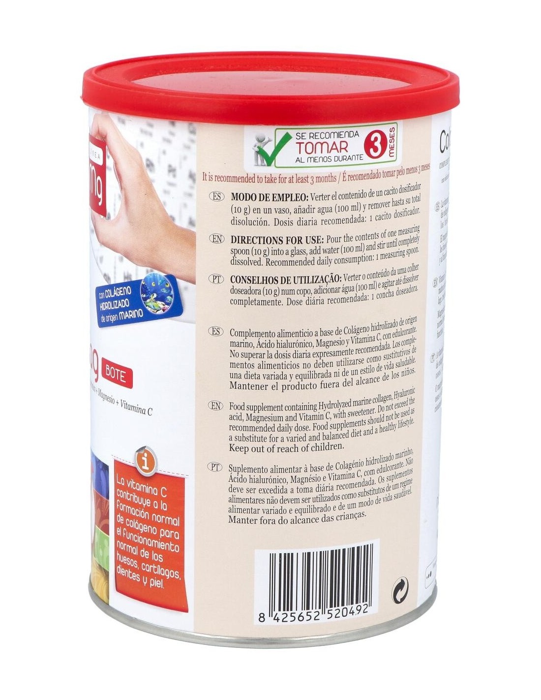 Complemento nutricional indicado para el normal mantenimiento de las articulaciones y de la piel, gracias a su contenido en nutrientes como el colágeno y la vitamina C.