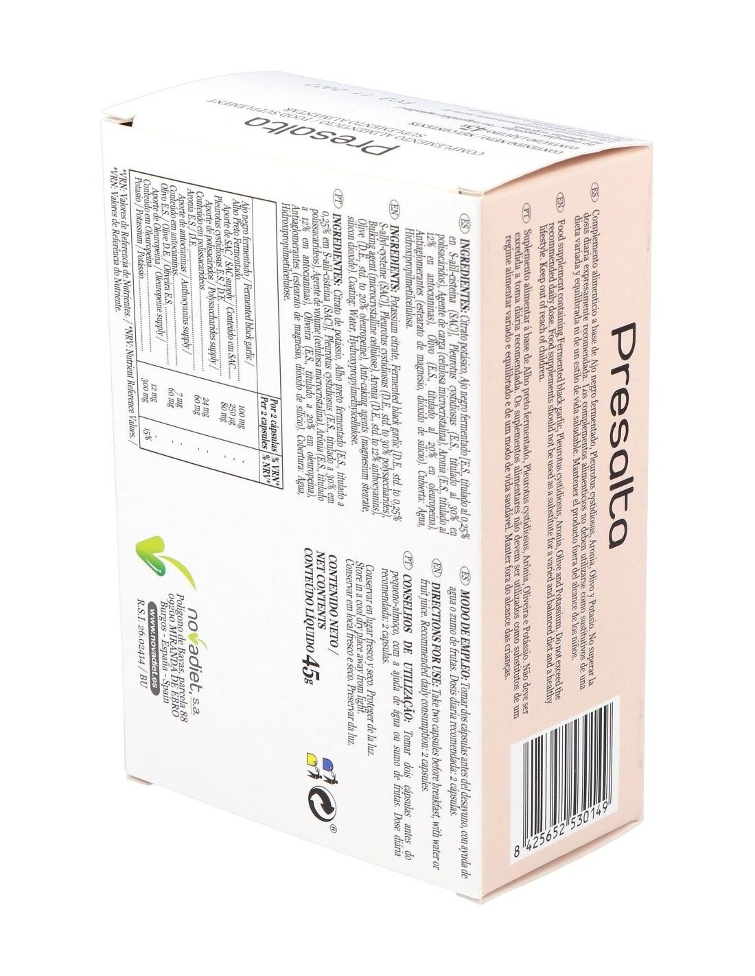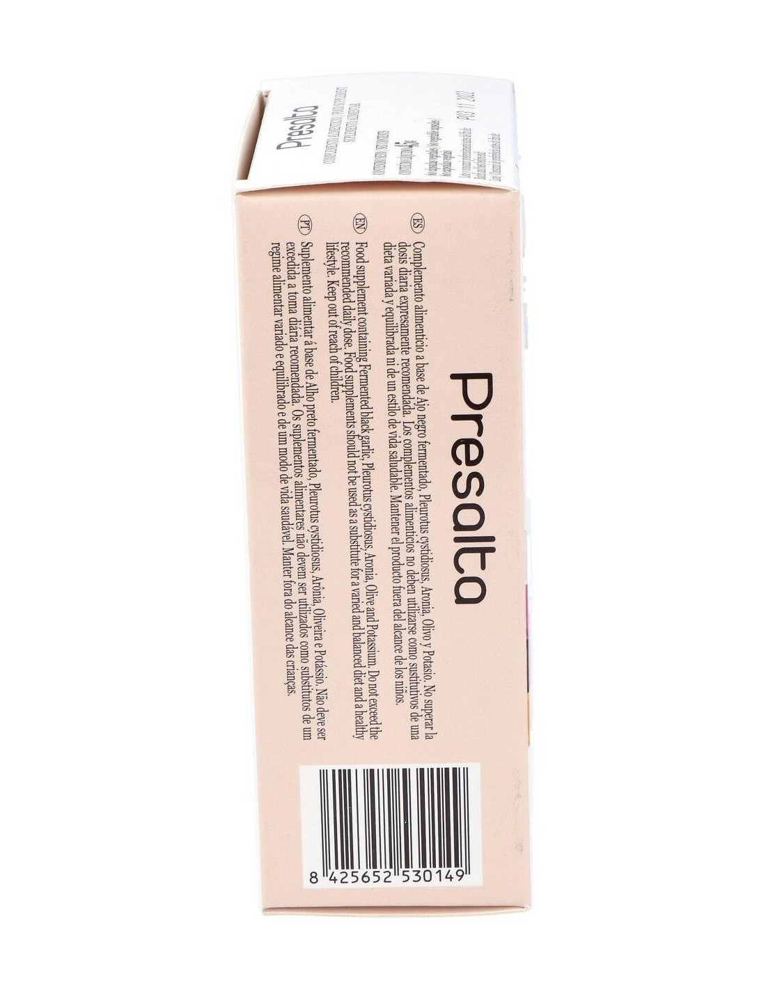 Citrato potásico, ajo negro fermentado (e.s titulado al 0,25% en SAC), pleurotus cystidiosus (e.s titulado al 30% en polisacáridos), agente de carga (celulosa microcristalina), aronia (e.s titulado al 12% en antocianinas), olivo (e.s titulado al 20% en oleuropeina), estearato de magnesio, dióxido de silicio, agua, hidroxipropilmetilcelulosa.