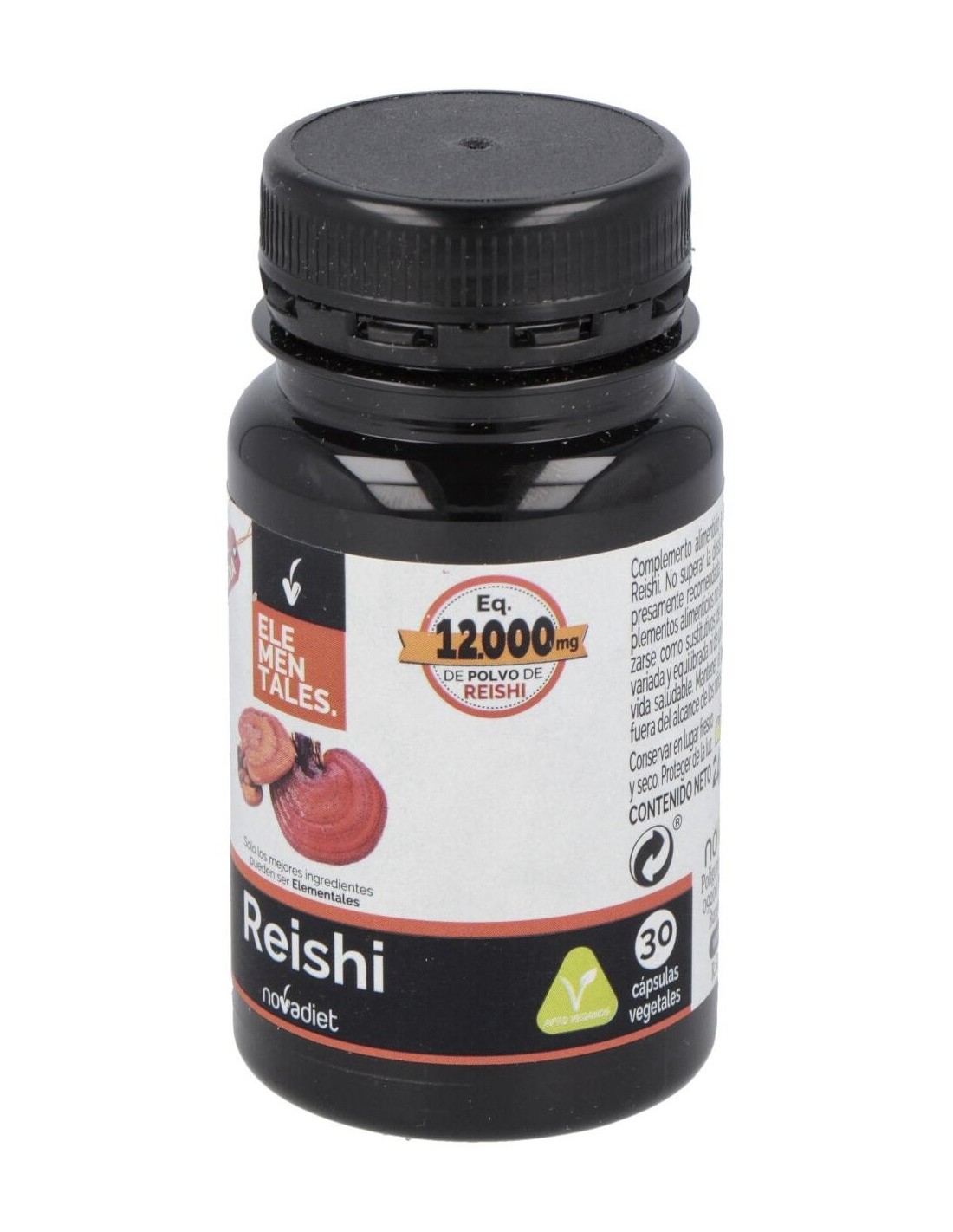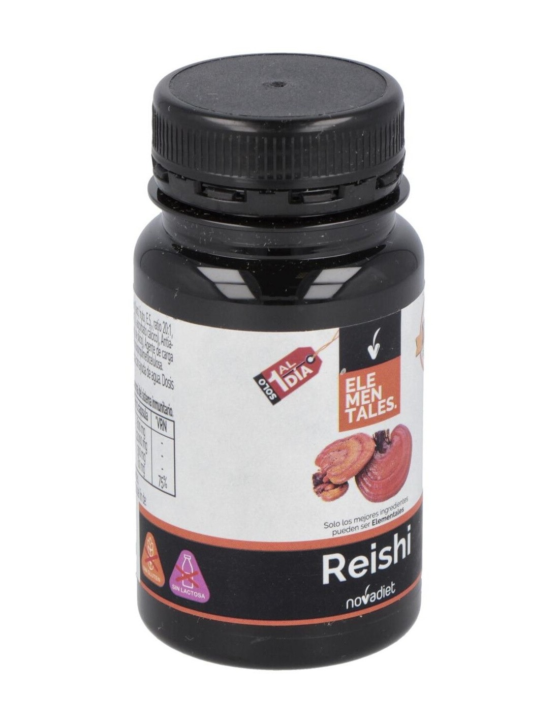 Reishi (Ganoderma lucidum Karst, fruto, E.S., ratio 20:1, titulado a = 50% en polisacáridos), Vitamina C (L-ascorbato cálcico), Antiaglomerantes (estearato de magnesio, dióxido de silicio), Agente de carga (celulosa microcristalina). Cubierta: Agua, Hidroxipropilmetilcelulosa.