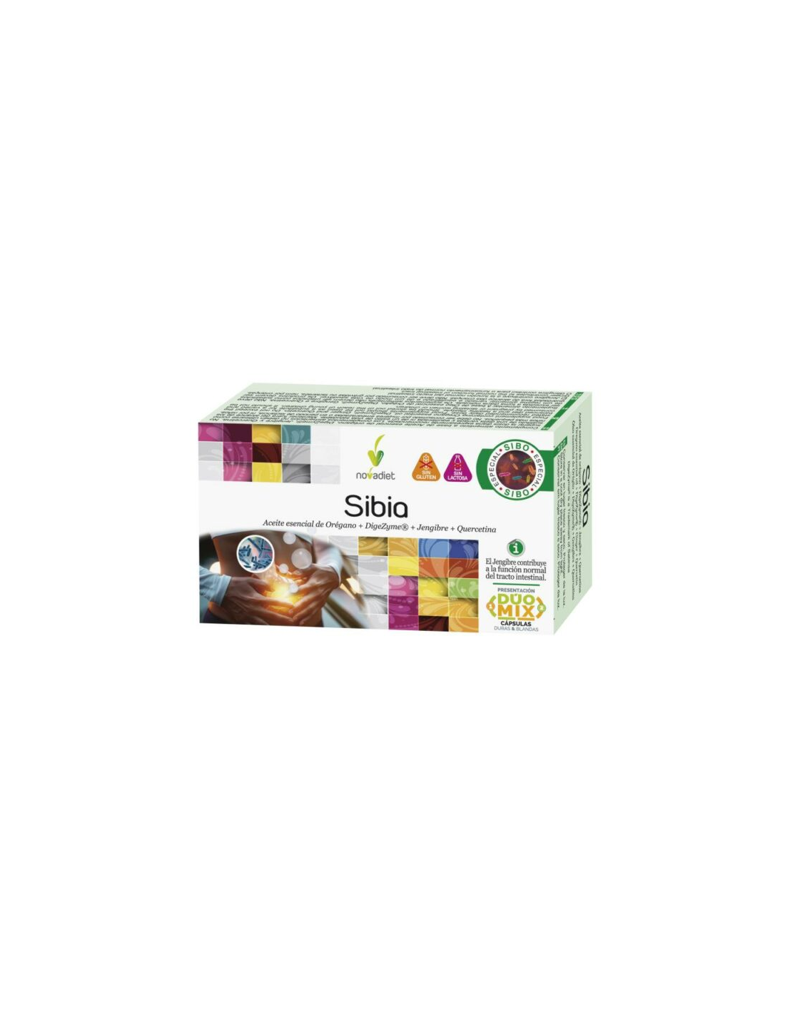 Descubre Sibia de Novadiet, un complemento alimenticio diseñado para apoyar tu bienestar digestivo de forma natural. Con la calidad y confianza que caracteriza a Novadiet, Sibia se presenta en un formato innovador de cápsulas blandas y duras, combinando ingredientes cuidadosamente seleccionados para ofrecerte una experiencia completa y efectiva. Incorpora Sibia a tu rutina diaria y siente la diferencia.Ingredientes de Calidad para un Bienestar Integral