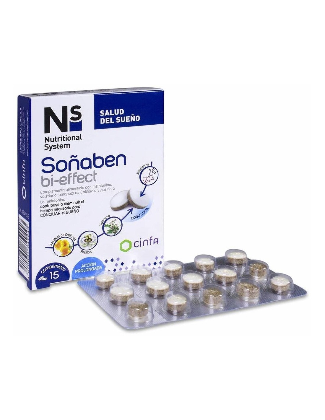 NSProducto que incorpora una novedosa tecnología que permite crear comprimidos bicapa, controlando la liberación de cada componente en el momento adecuado del sueño. La melatonina se libera al principio para ayudar a conciliar el sueño y la pasiflora, valeriana y amapola de california se libera posteriormente para ayudar a tener un sueño reparador y de calidad.