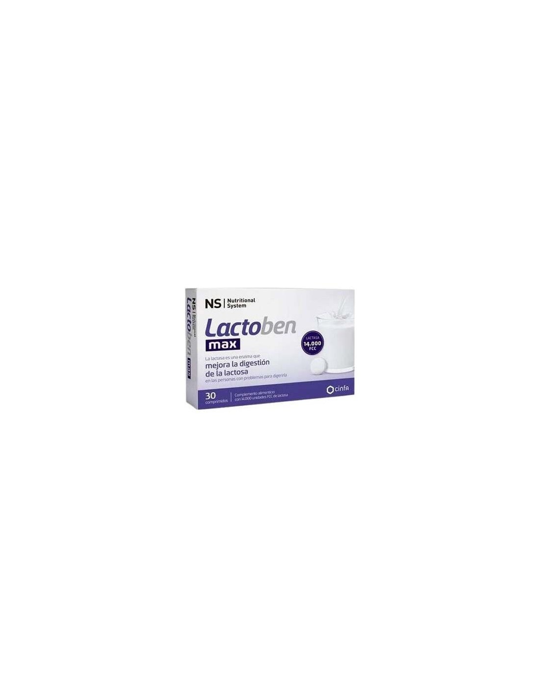 NSLactoben Max de Ns Cinfa permite a los intolerantes a la lactosa comer alimentos con lactosa sin sufrir las molestias intestinales y gases que normalmente les provoca la lactosa. Gracias al alto contenido en enzima lactasa ( 14.00 FCC por dosis) un comprimido digiere 500 ml de leche. siendo útil para aquellas personas con altos niveles de intolerancia a la lactosa tras la ingesta de alimentos que la contengan.
