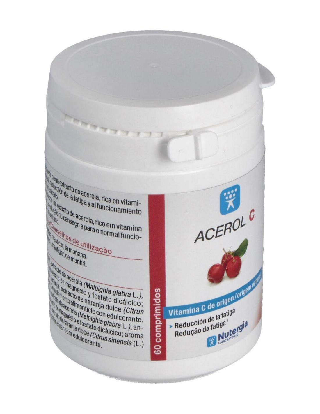 Comprimidos elaborados a base de extracto de acerola, extracto de limón y magnesio que retrasan la aparición de los signos de la fatiga y el cansancio, tanto físico como mental. Es una fuente rica en vitamina C, que favorece la absorción de hierro por el organismo y participa en el metabolismo energético.