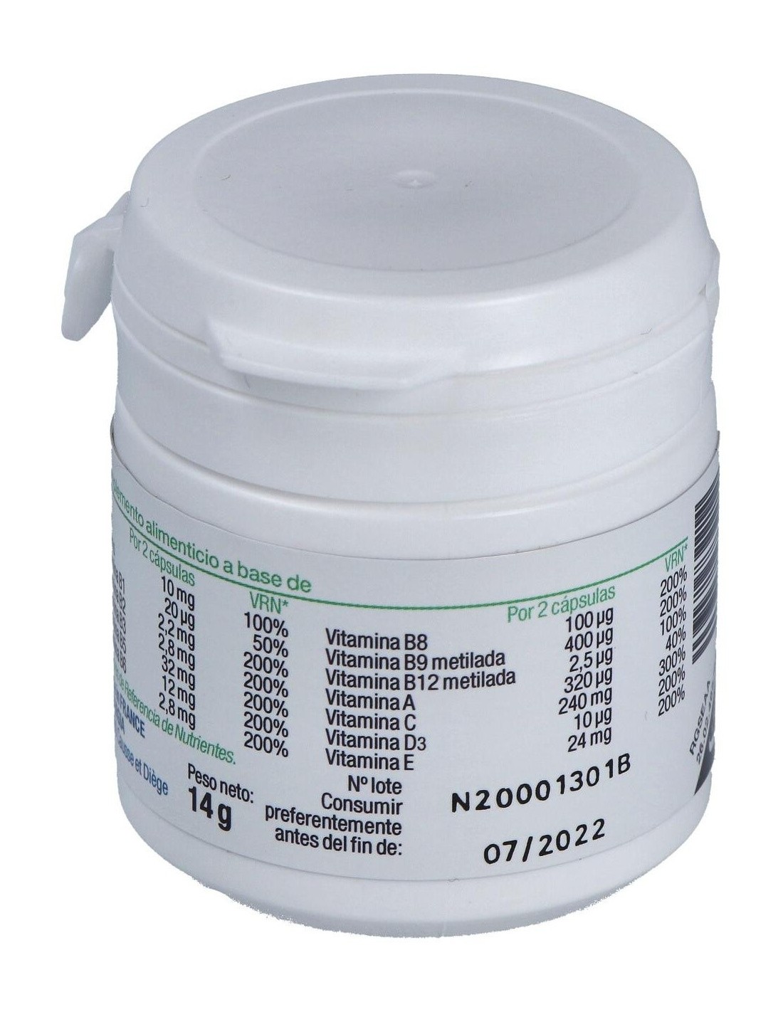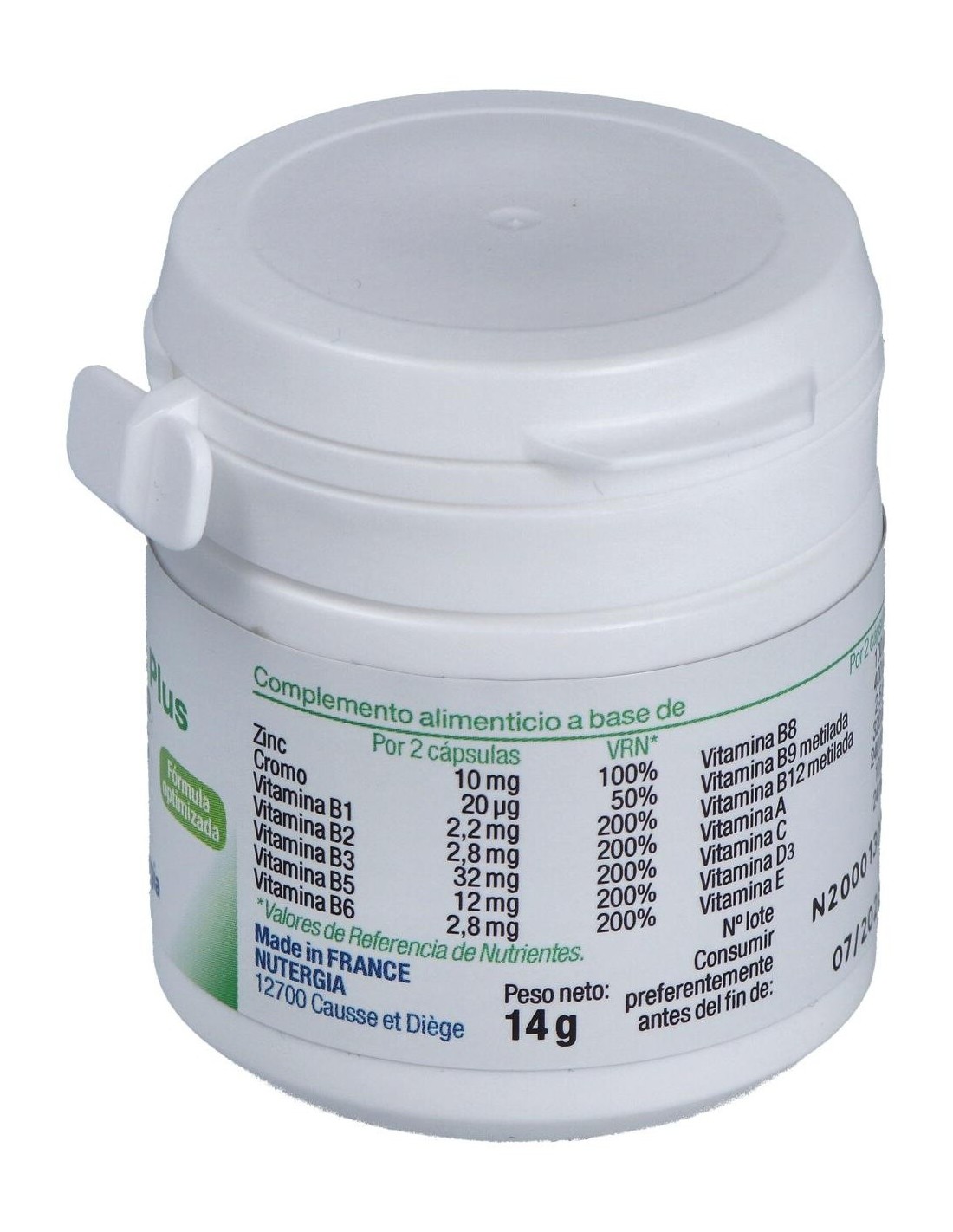 Complemento alimenticio elaborado a base de ingredientes naturales, que contribuyen a reducir la fatiga y el cansancio creado por el estrés temporal. Su contenido en vitaminas B2, B5, B6, y B9, además de la vitamina C y el zinc, contribuyen a proteger las células contra el estrés oxidativo, a la vez que ayuda a reforzar el metabolismo energético.