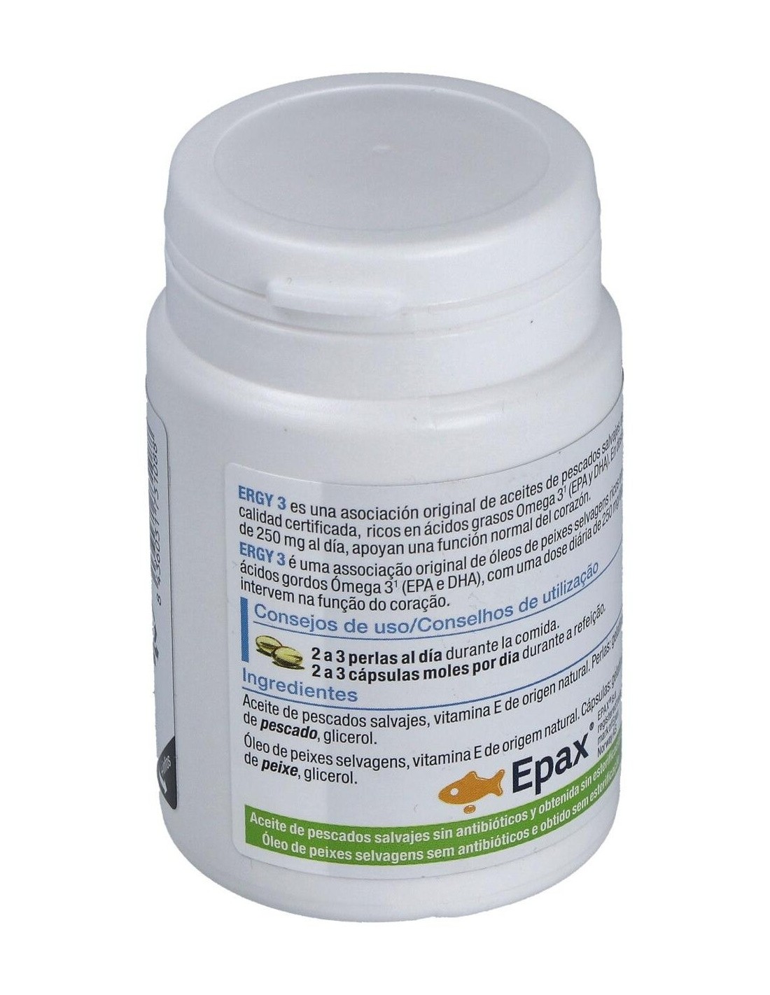 Aceite de pescados* salvajes EPAX®, vitamina E de origen natural. Perla: Gelatina de pescado, glicerol.