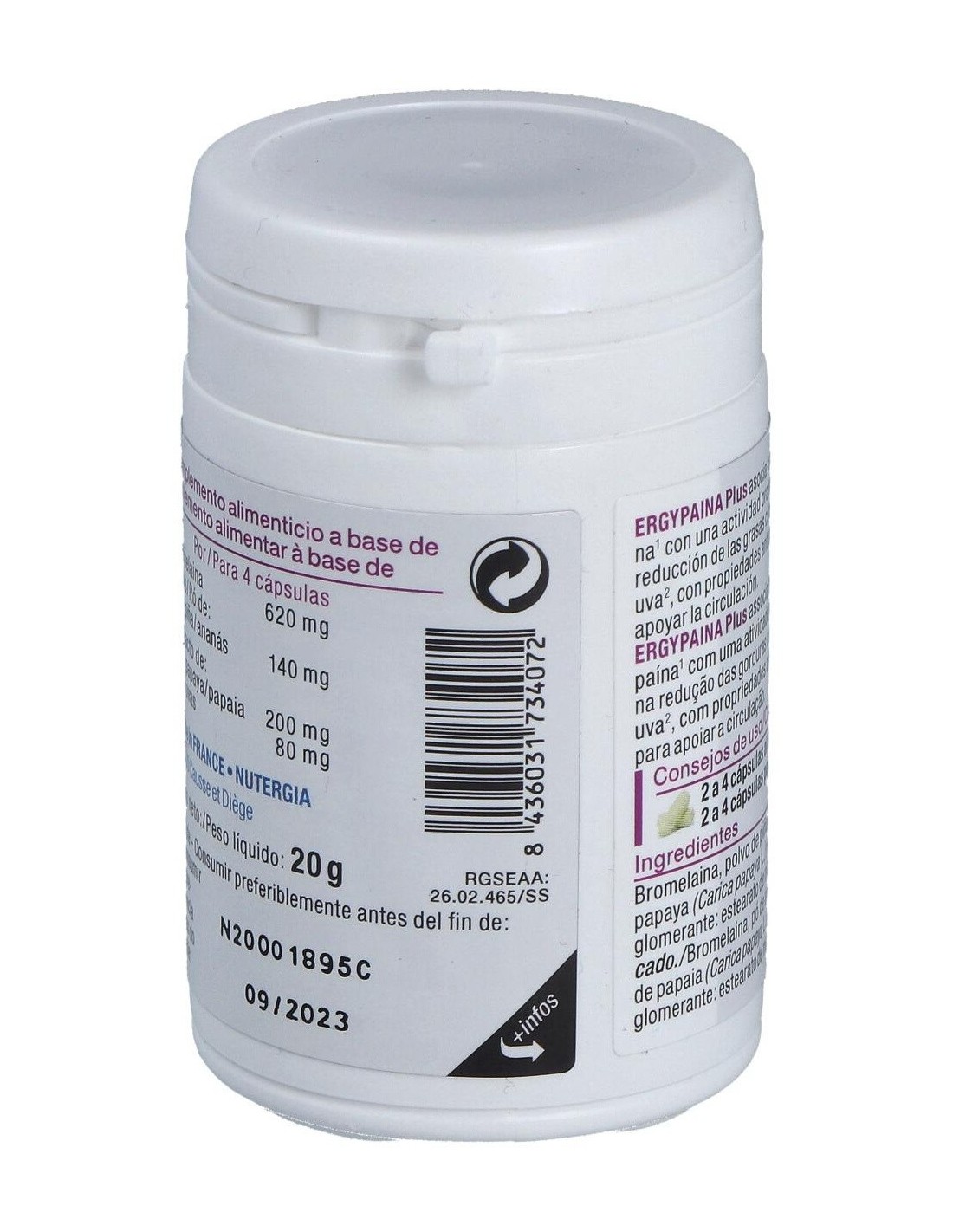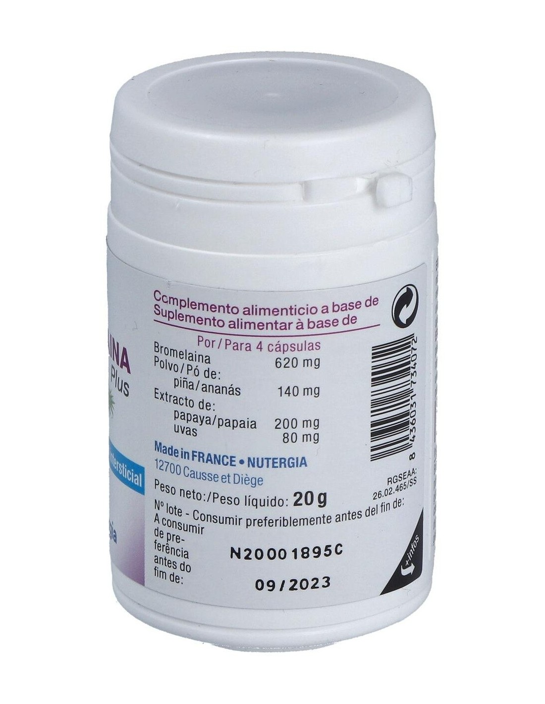 Asocia un extracto de Papaya (cuya actividad proteolítica está reconocida), con polifenoles de uva. Un extracto de piña, que aporta bromelaina, completa esta fórmula.