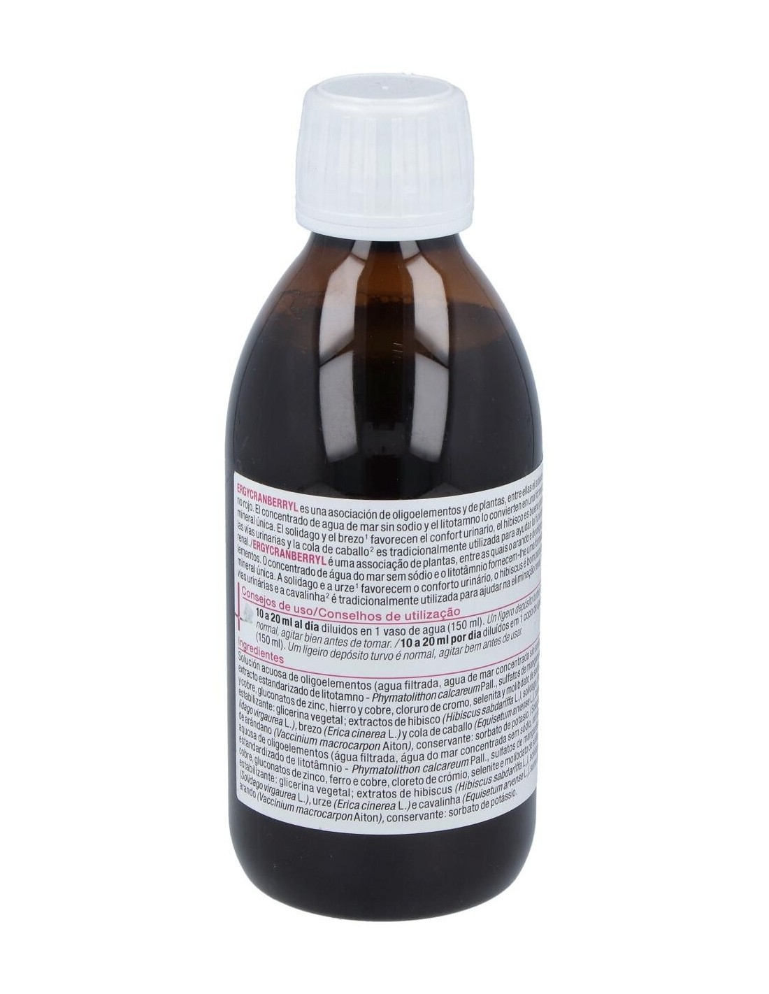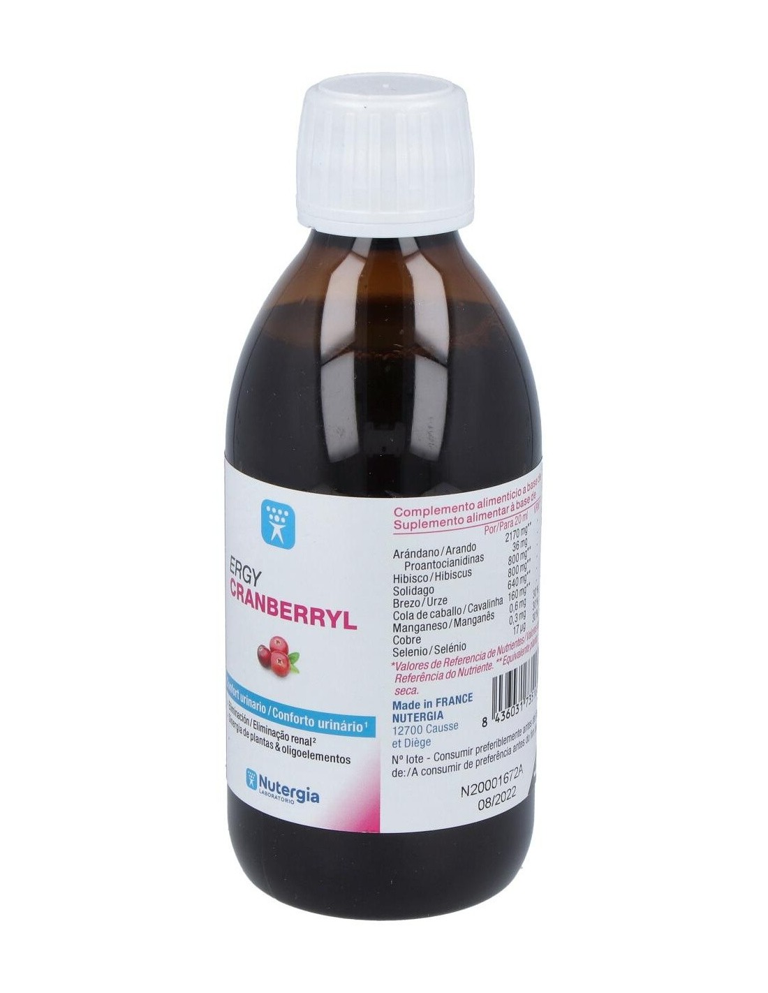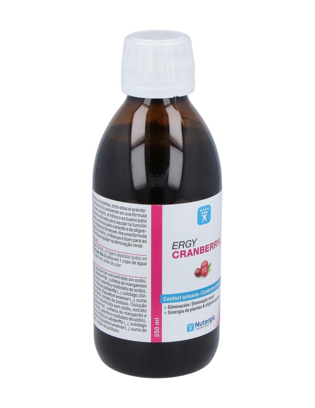 Ergy Cranberryl es un jarabe realizado a base de arándano rojo, hibisco, brezo, cola de caballo y enriquecido con oligoelementos. Con él, ayudarás a reducir la fijación de bacterias en tus vías urinarias y favorecerás la eliminación de líquidos.