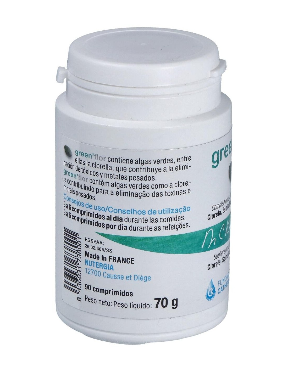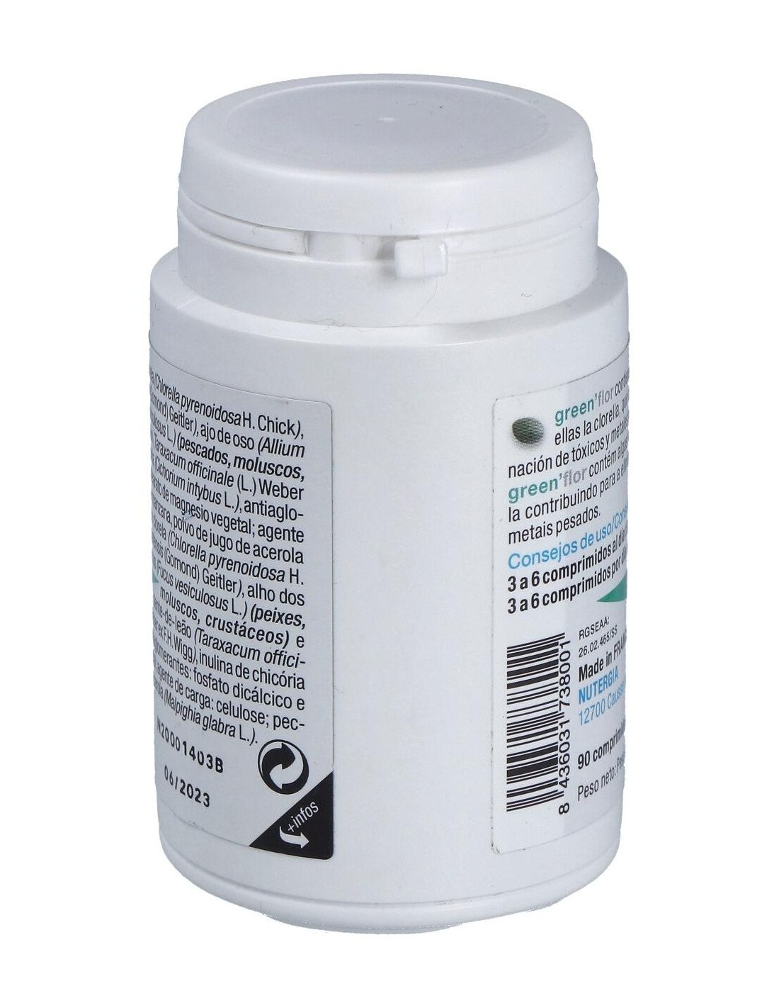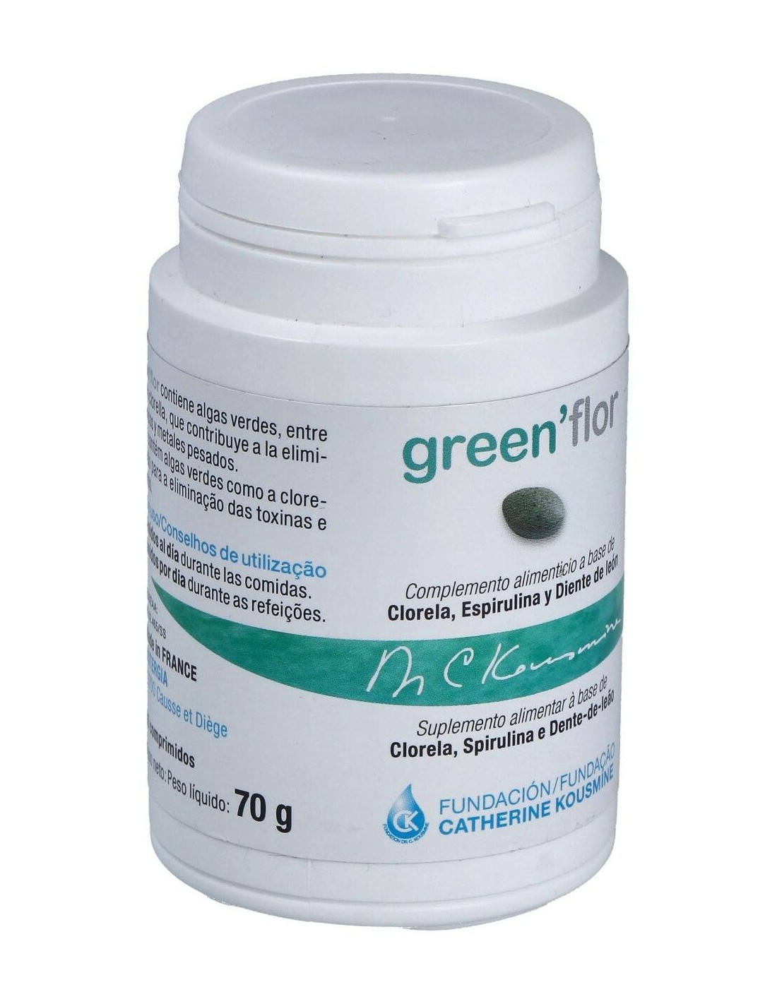 Inulina (FOS), chlorella, celulosa, espirulina, pectina de manzana, extracto de acerola, ajo, fucus, diente de león, estearato de magnesio, sílice.