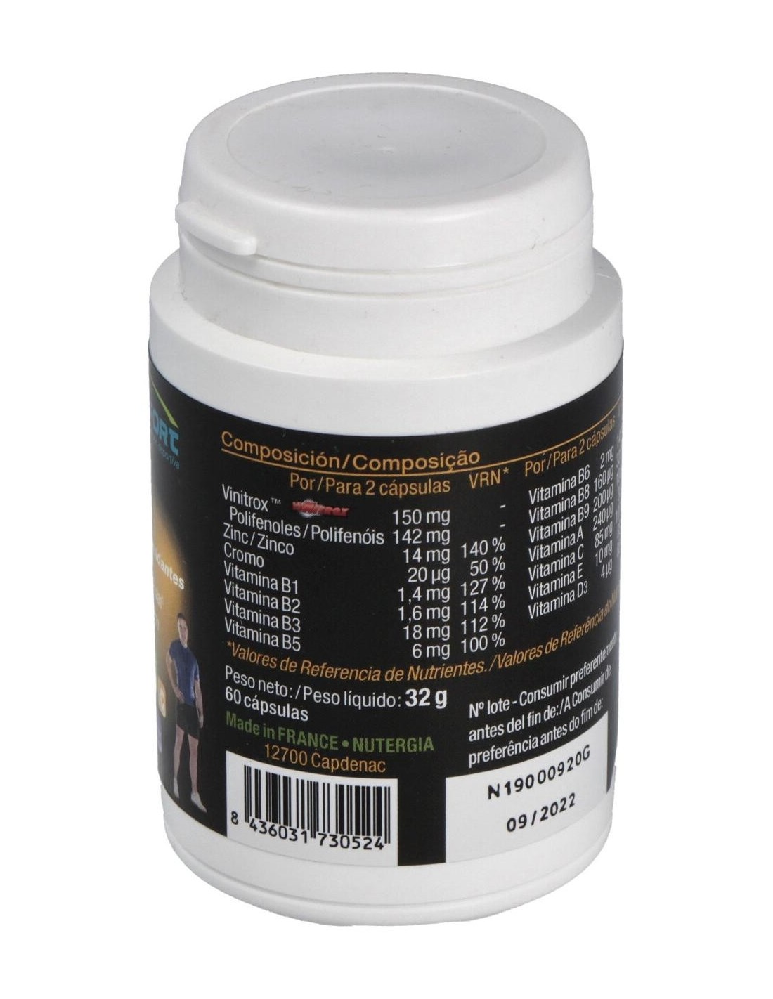 De acción ultra-potente contra el stress oxidativo generado por una actividad física, limitando así los procesos degenerativos celulares. El aporte de vitaminas y nutrientes esenciales ofrece una solución natural y eficaz (en caso de sobreactividad, stress a diario) para conseguir energía y motivación. Un suplemento nutricional para los deportistas resulta interesante y tiene toda su justificación. No obstante, los complementos alimenticios se señalaron demasiadas veces como los culpables en casos de dopaje, lo que contribuye en crear una sospecha generalizada. Se trata de un producto natural, sano, sin sustancias dopantes, es un complemento nutricional a base de vitaminas, cromo, zinc y FrutoLogic®, reconocidos por su ayuda a la hora de optimizar las capacidades físicas y mentales. Al estimular la producción de monóxido de nitrógeno y gracias a sus propiedades vasodilatadorase arteriales, esta formula innovadora permite, facilitar la respiración, fuerza y resistencia musculares y mejor recuperación y reconstrucción muscular.