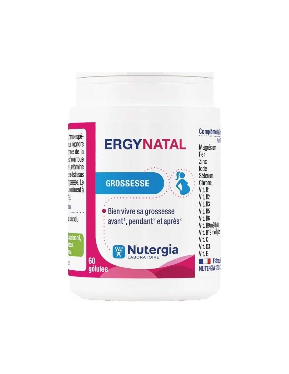 NUTERGIAERGYNATAL está especialmente indicado para acompañar a la mujer antes, durante y después del embarazo, desde el período de la preconcepción hasta la lactancia. Combina minerales, oligoelementos y vitaminas de alta biodisponibilidad. Las vitaminas B9 y B12, trascendentales durante la gestación, están en forma metilada o activa, lo que implica una mejor asimilación. Producto apto para veganos.