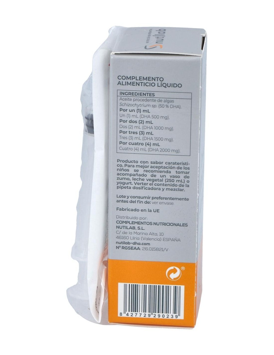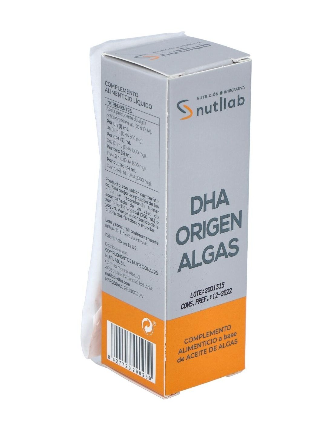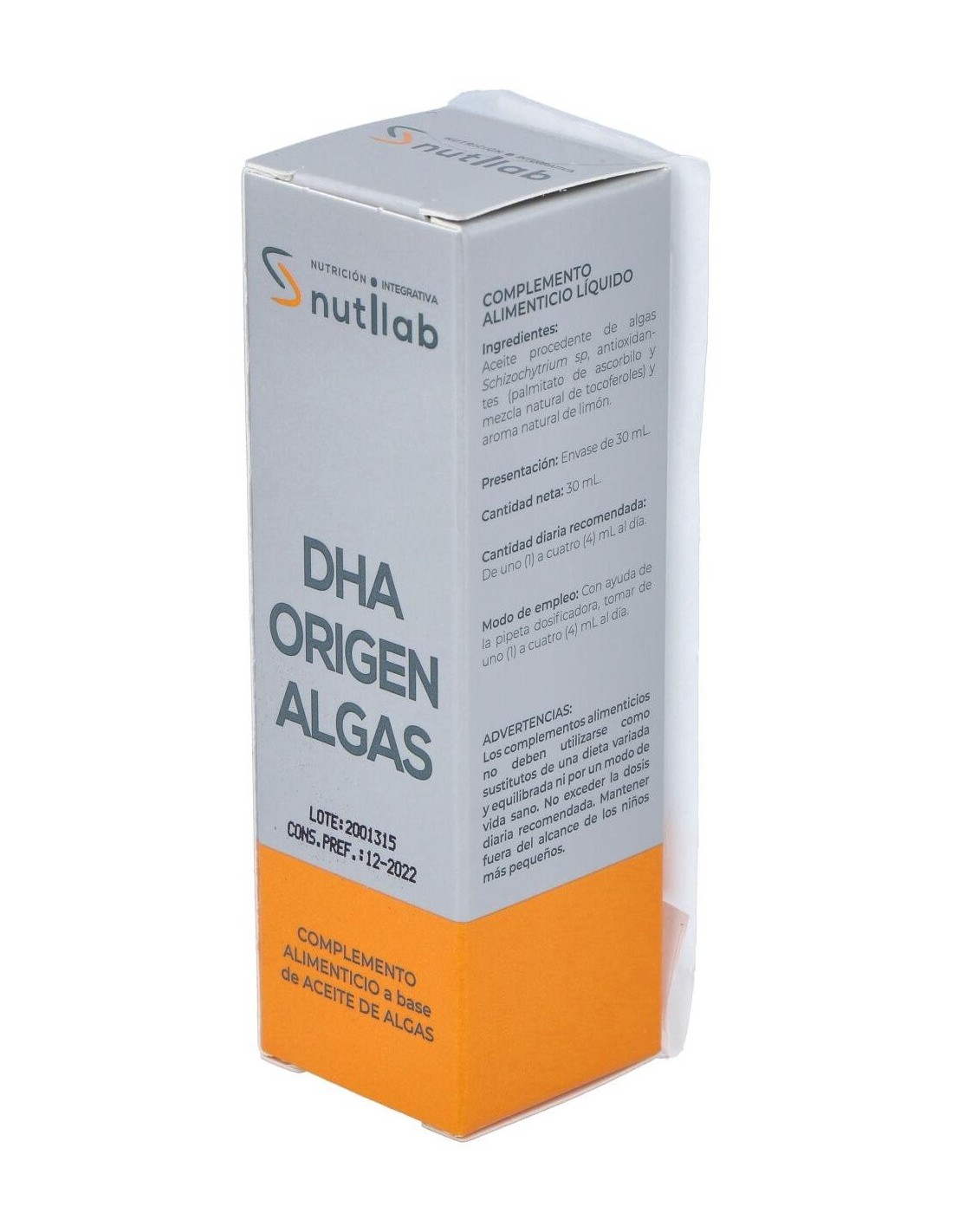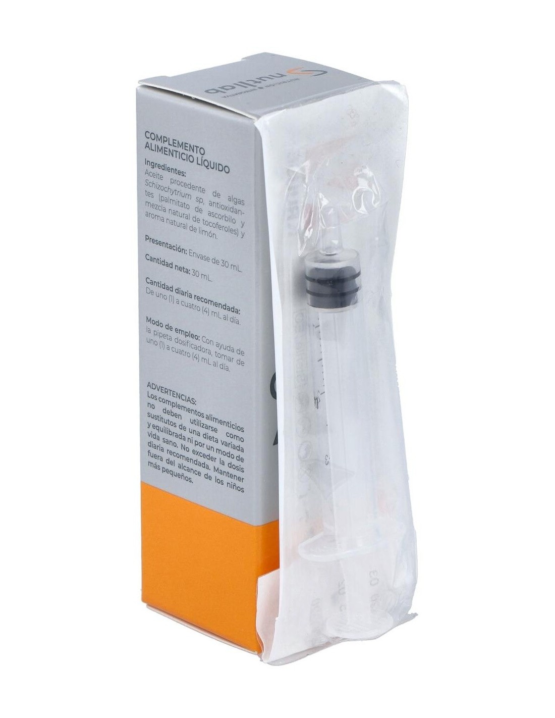 Aceite de alga Schizochytrium sp. con un mínimo de 50% de concentración de DHA (1 ml de aceite DHA origen Algas contiene un mínimo de 500 mg de DHA).