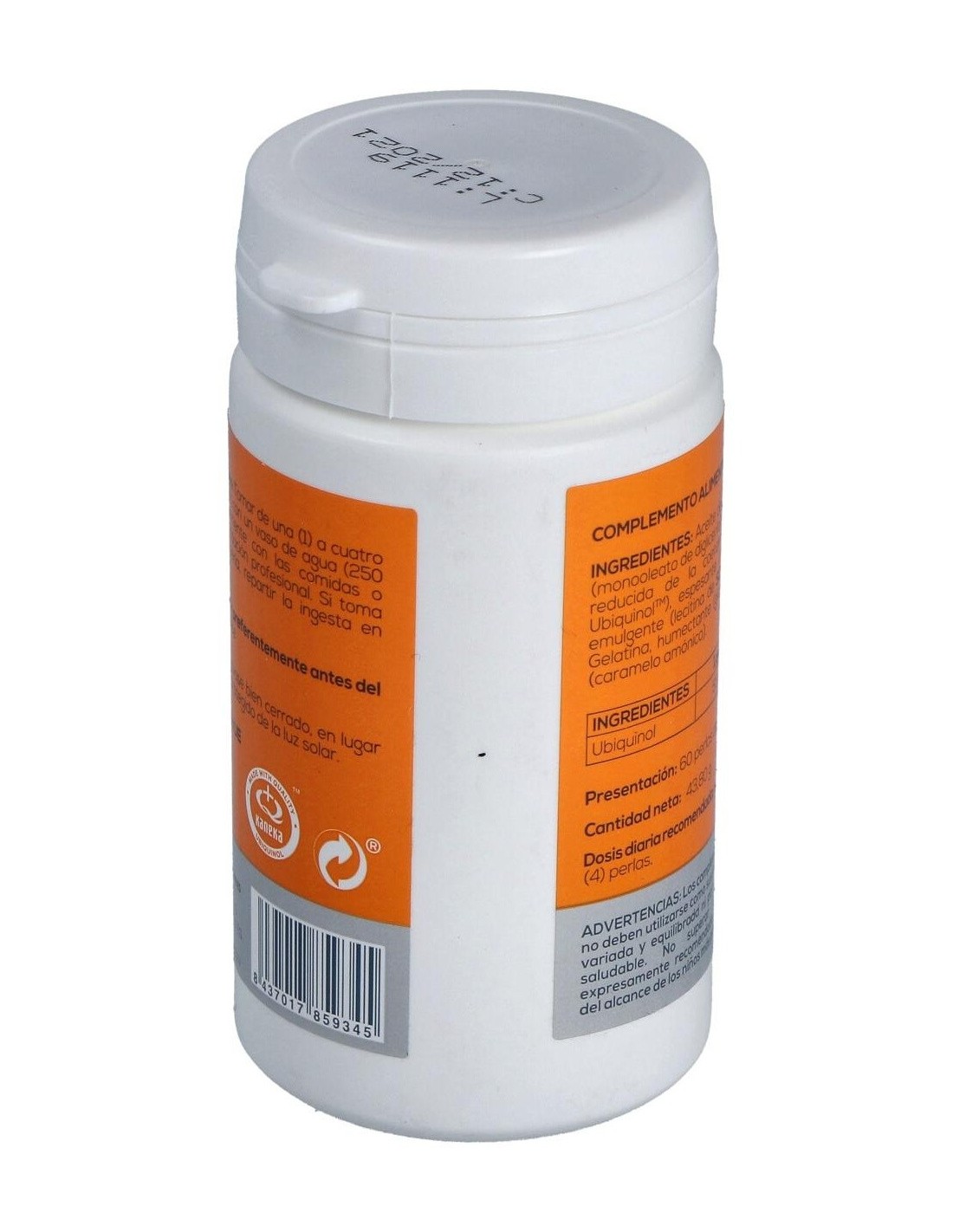 Aceite de colza, emulgente (monooleato de diglicerilo), ubiquinol (forma reducida de la coenzima Q10, Kaneka UbiquinolTM), espesante (cera de abejas), emulgente (lecitina de soja). Envolvente: Gelatina, humectante (glicerol) y colorante (caramelo amónico).