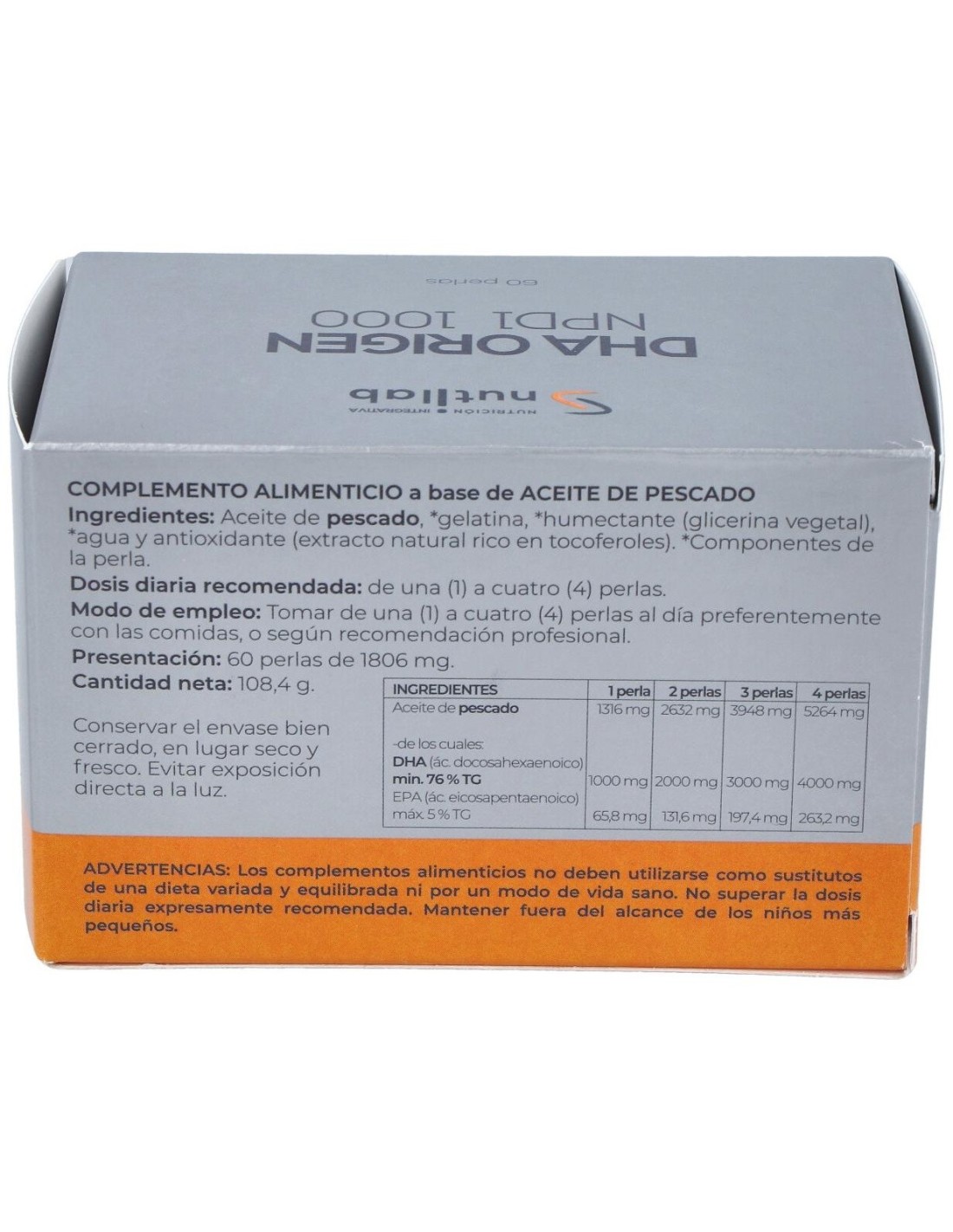 Dha Origen Npd1 1000 Blister 60Perlas. de Nutilab