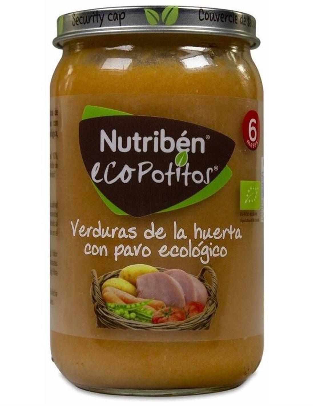 NUTRIBENAlimento infantil destinado a niños a partir del 6º mes de edad. Con ingredientes 100% ecológicos. Sin colorantes, conservantes ni aditivos. No contiene gluten ni leche.