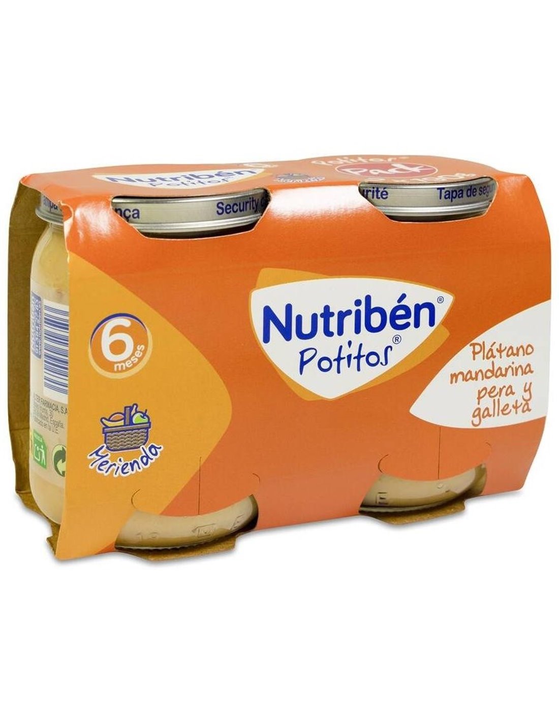 NUTRIBENNUTRIBEN | Nutribén Potitos Plátano, Mandarina, Pera Y Galleta 2udsX190gPack de 2 potitos ideados para la merienda de bebés desde los 4 meses, de plátano, mandarina, pera y galleta sin gluten. Nutribén hace los potitos siguiendo las recomendaciones de la ESPGHAN y teniendo en cuenta las necesidades nutritivas de cada etapa.
