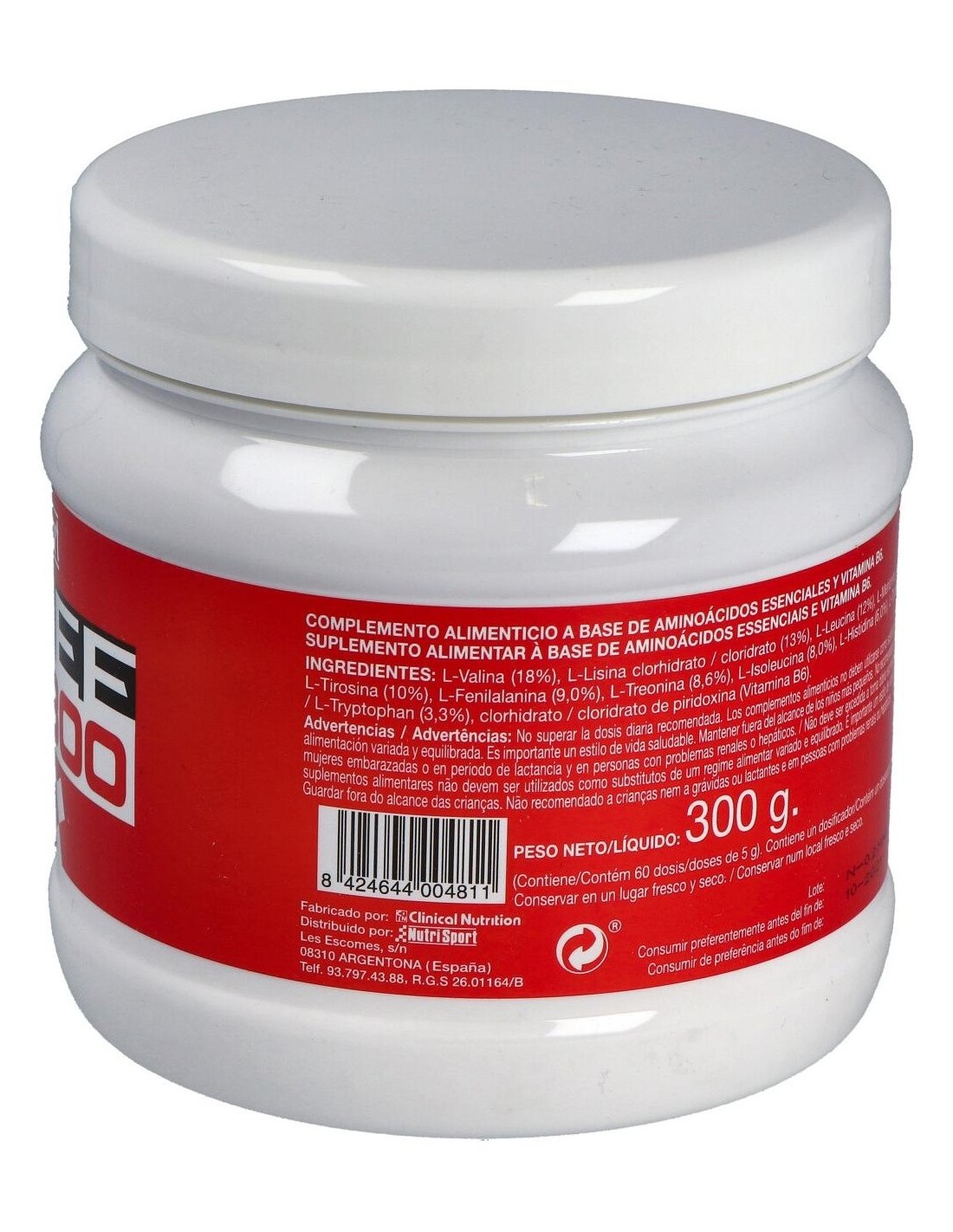 Complemento alimenticio que proporciona aminoácidos esenciales, adecuado para incluir junto con una alimentación variada y equilibrada y un estilo de vida saludable. La presencia de proteínas en la dieta forma parte de una alimentación variada y equilibrada para poder realizar las actividades diarias con total normalidad. Además, las proteínas contribuyen a un aumento y conservación de la masa muscular. Las proteínas están formadas por cadenas de aminoácidos. Los aminoácidos esenciales son aquellos que debemos ingerir mediante la dieta ya que nuestro organismo es incapaz de sintetizarlos. Existen 8 aminoácidos esenciales:L-Leucina, L-Isoleucina, L-Fenilalanina, L-Metionina, L-Lisina, L-Treonina, L-Triptófano y L-Valina.