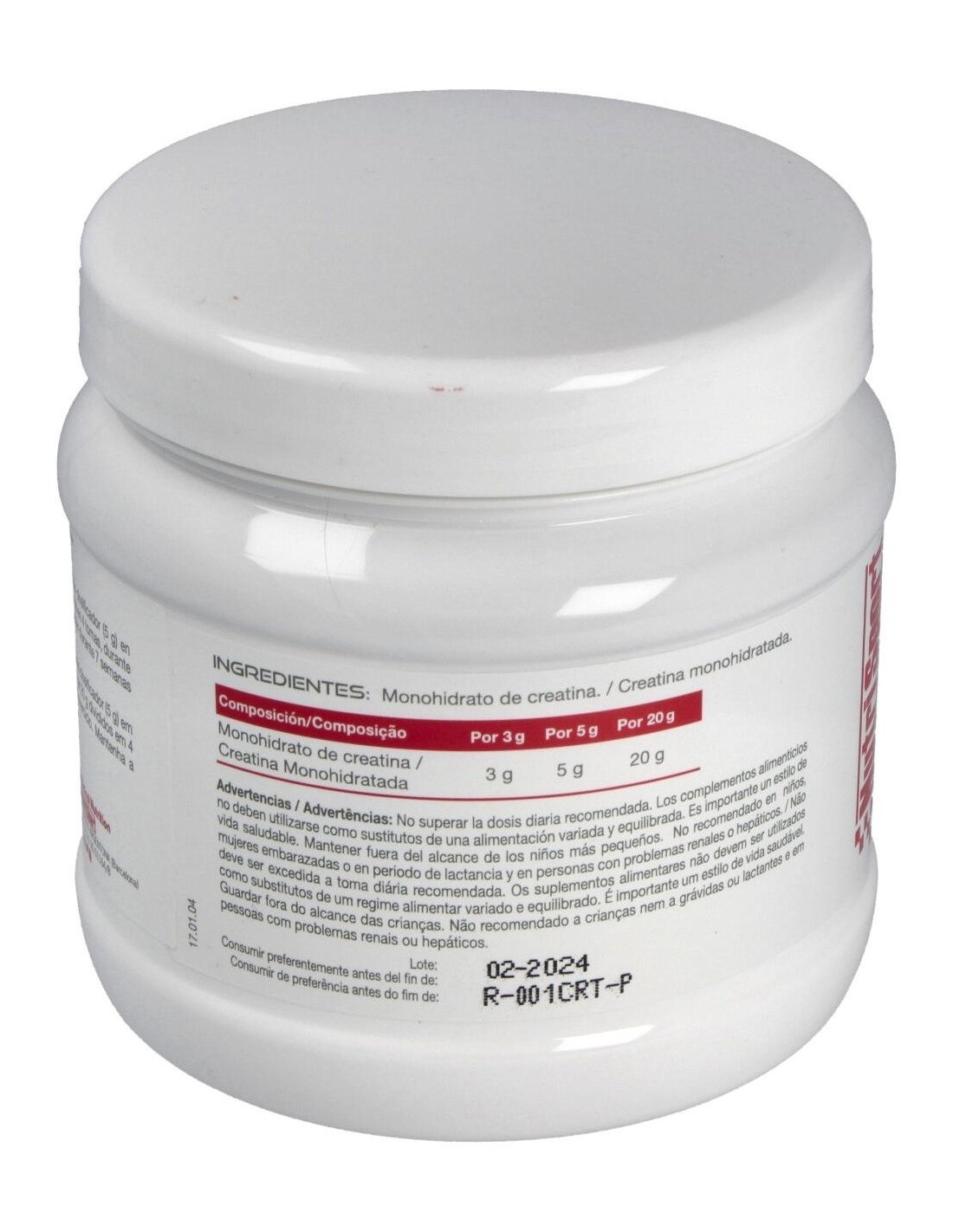 Monohidrato de creatina (67%), agentes de carga (celulosa y fosfato de calcio), antiaglomerante (estearato de magnesio vegetal).